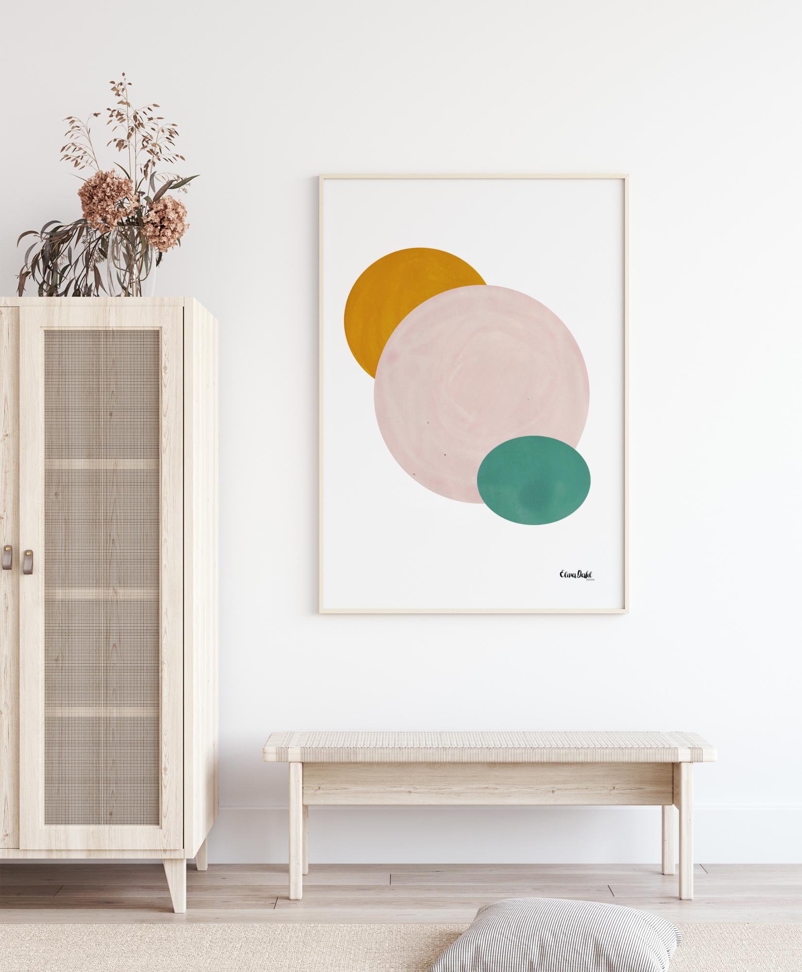 A delightfully uncomplicated abstract poster with pastel-coloured graphic shapes, created by designer Elina Dahl. A stylish print that fits excellently in, for example, the minimalist, modern, or retro-inspired home. This poster looks fantastic together with Elina Dahl's other posters in the same style.
