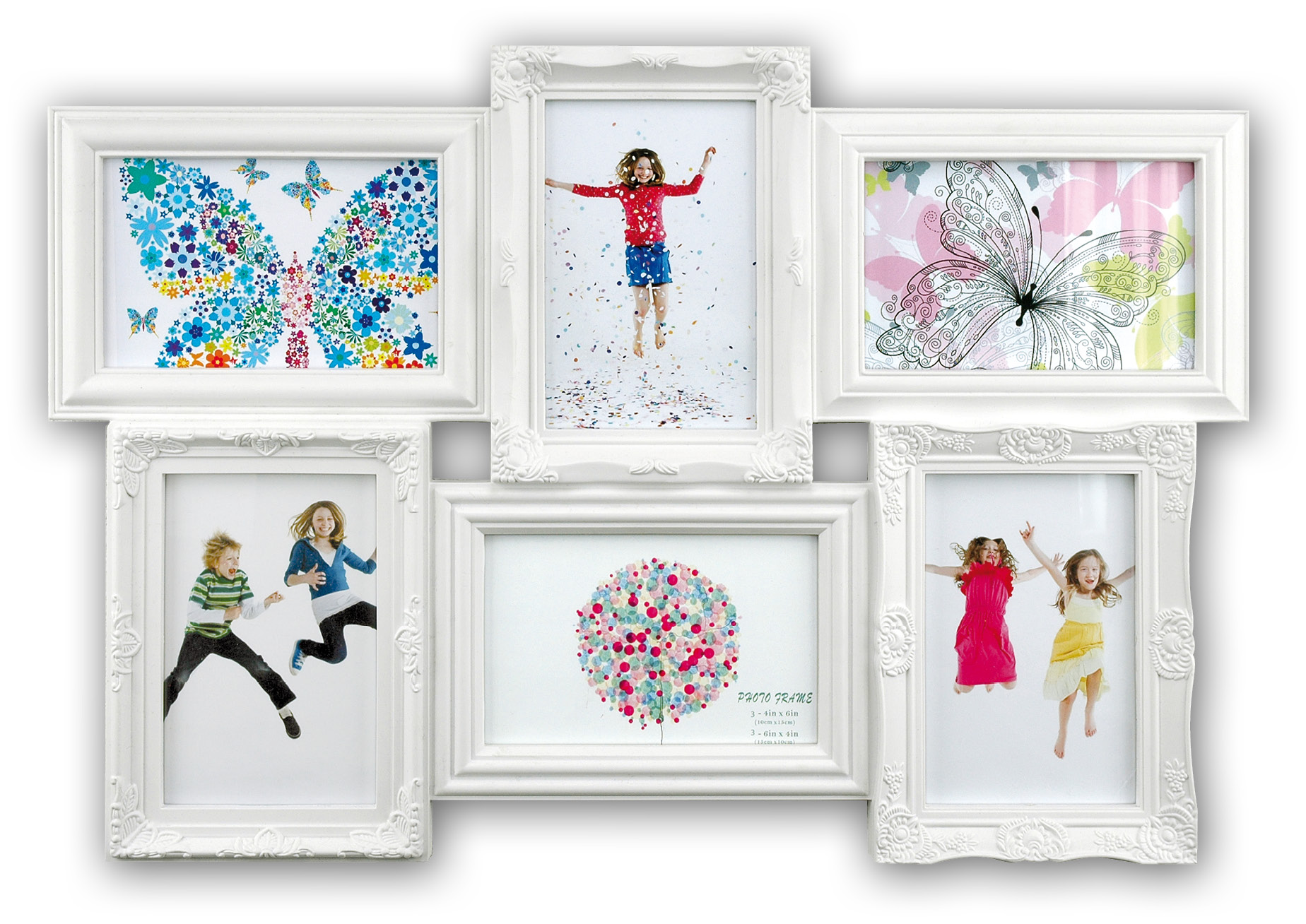Sku:Beautifully embellished white collage picture frame with a wide edge in a classic style. Perfect for pictures that you like that little bit extra.
