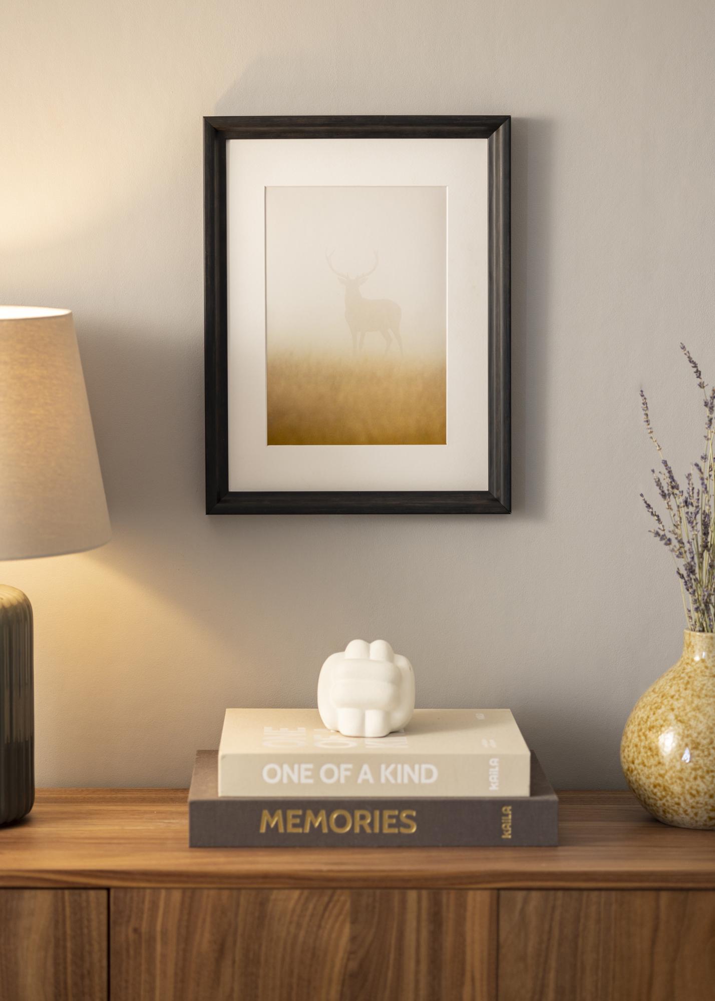 Traditional photo frame in a dark black-brown colour that is closer to black than brown. A superb choice when you're looking for a dark-coloured picture frame where the wood's structure is still visible, giving the picture frame more life than one completely in black. This picture frame can also be made to measure.