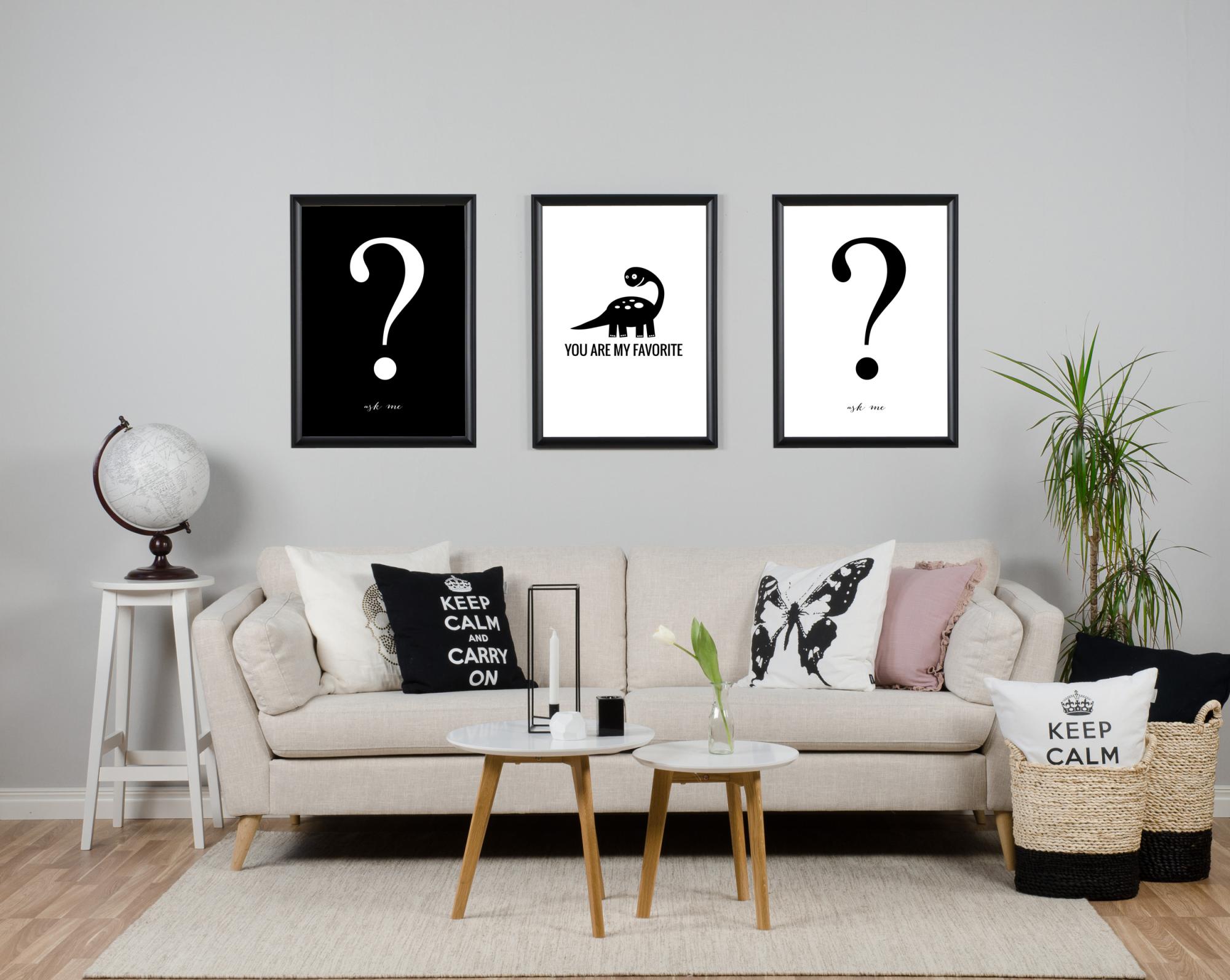 Sleek graphic sheet, Ask me, with text and a larger question mark in white font on a black background. Looks great together with other prints on a picture wall in the living room, or let your guests know that you are an open person right in the hallway. The poster goes well with the other typographic motifs in the same series - Ask me, Do me or Share me.
