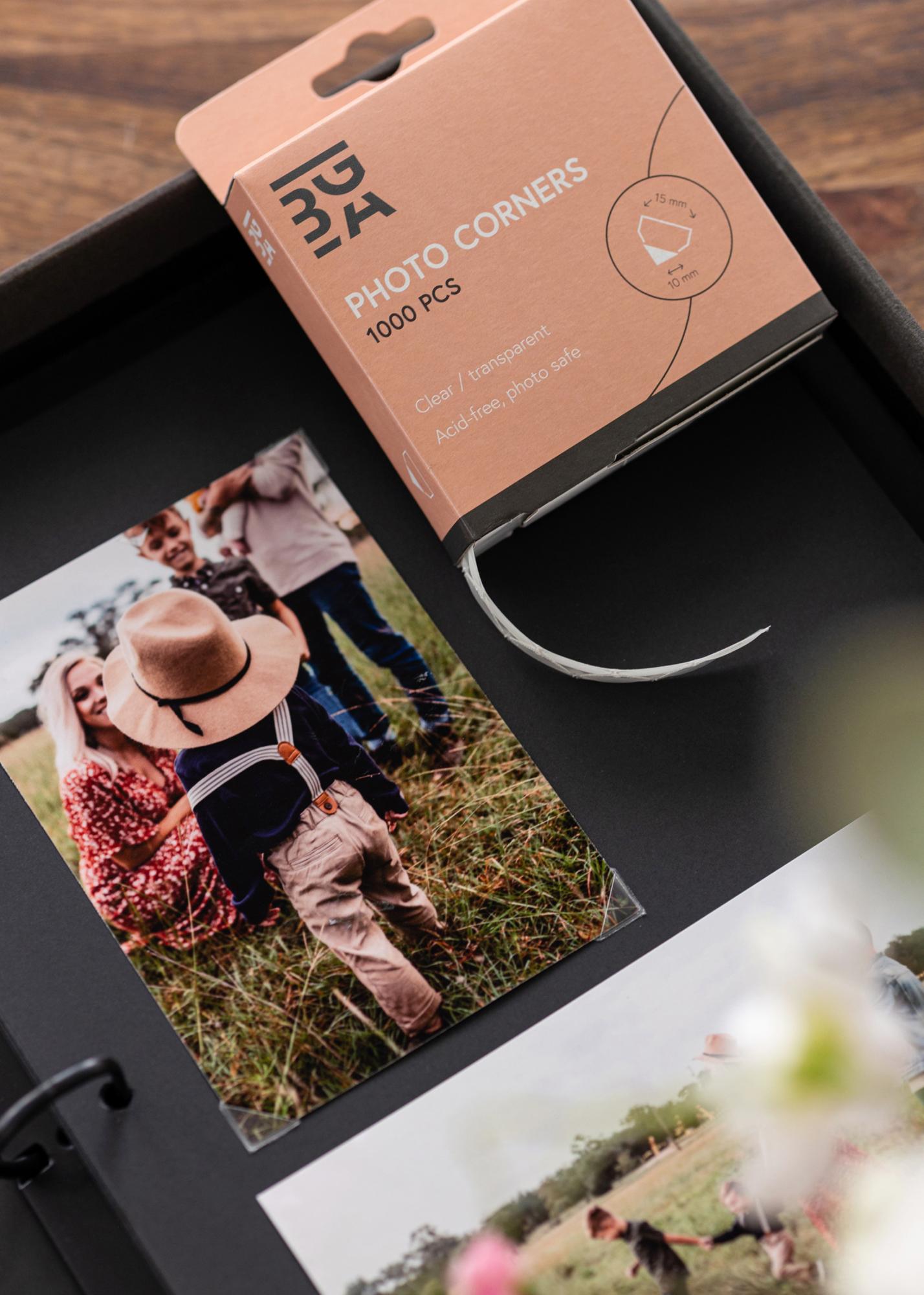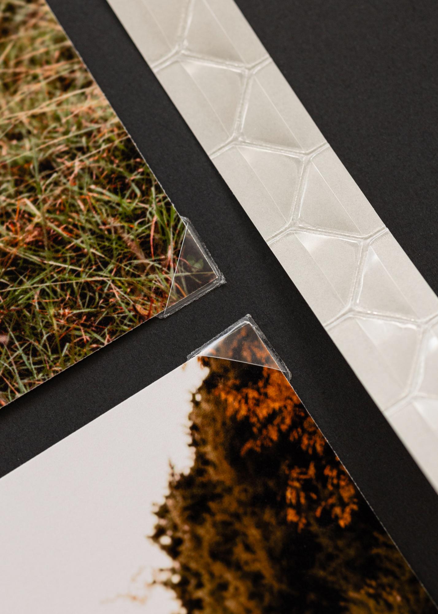 Photo corners are perfect when, for example, you want to mount pictures in a photo album without using glue. And because you stick down the corners of the pictures, they're protected from curling and damage over time. The result is an attractive, convenient and reliable way of mounting your pictures.