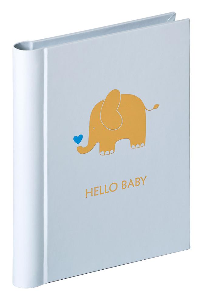 "Hello baby", says this sweet mini photo album that's dedicated to the youngest in the family. The album is light blue with an image of a cute baby elephant over the text. Inside, you'll find 30 plastic sleeves decorated with heart shapes, elephants and flowers. On the first page there are 6 printed rows where you can write a nice message.
