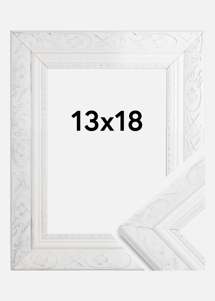 Barock White is a magnificent wooden picture frame in a retro style, with beautiful embellishments. Perfect for when you're looking for a wide, beautiful wooden picture frame in an old style. A good choice for enlargements of pictures you like that little bit extra.