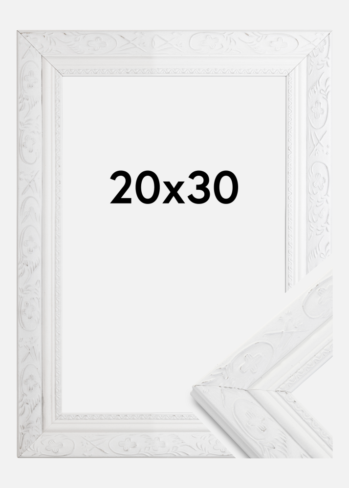 Barock White is a magnificent wooden picture frame in a retro style, with beautiful embellishments. Perfect for when you're looking for a wide, beautiful wooden picture frame in an old style. A good choice for enlargements of pictures you like that little bit extra.