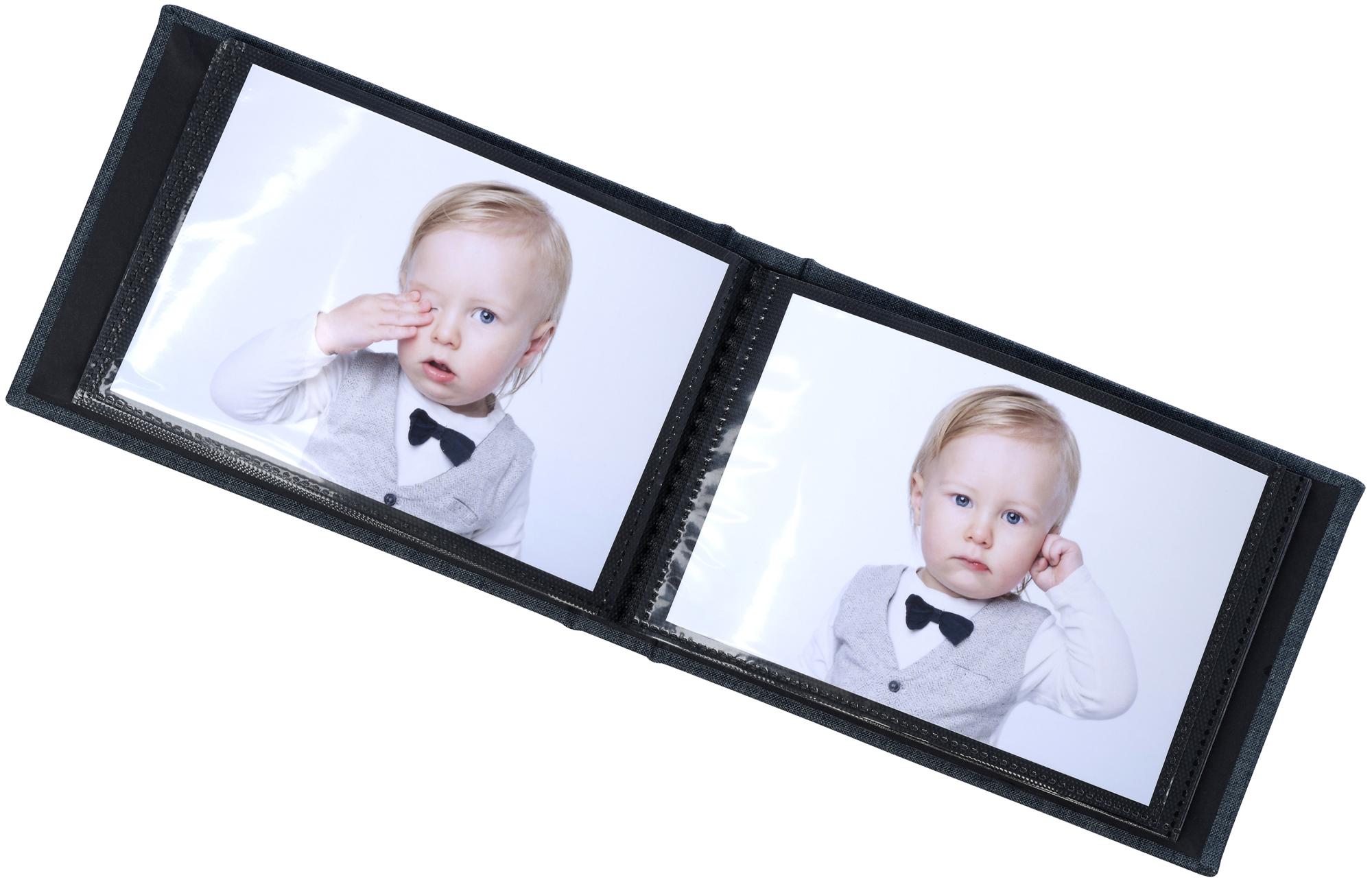 The album pages are convenient photo slots that you easily can slide your photos into.