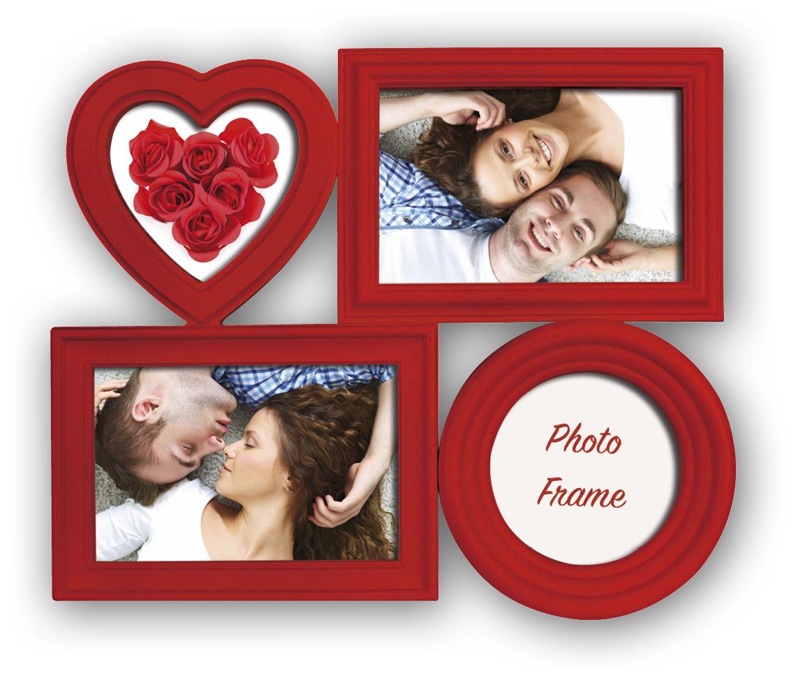 Collage picture frame with a lovely red colour and space for 4 pictures in different sizes and shapes. Perfect when you're looking for a romantic frame for your nicest pictures.