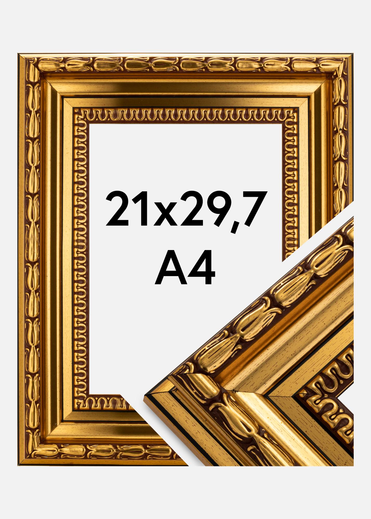 Birka is a golden picture frame that really catches and keeps the gaze. With its wide edges and beautiful embellishments, this is a picture frame that works well when you're looking for something really spectacular. The picture frame is manufactured in our own frame workshop, and we dare say this gives it an unusually high quality!