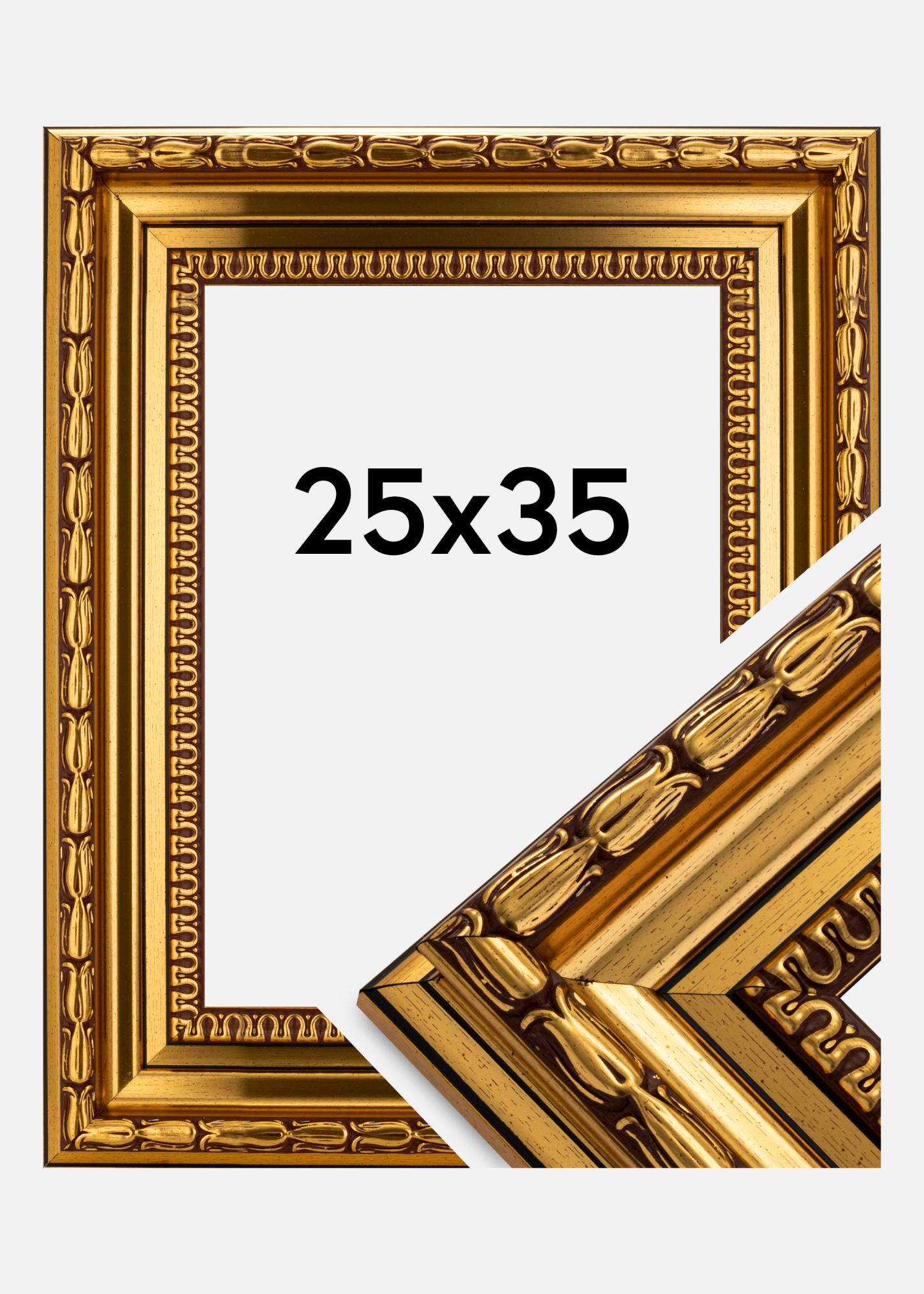 Birka is a golden picture frame that really catches and keeps the gaze. With its wide edges and beautiful embellishments, this is a picture frame that works well when you're looking for something really spectacular. The picture frame is manufactured in our own frame workshop, and we dare say this gives it an unusually high quality!