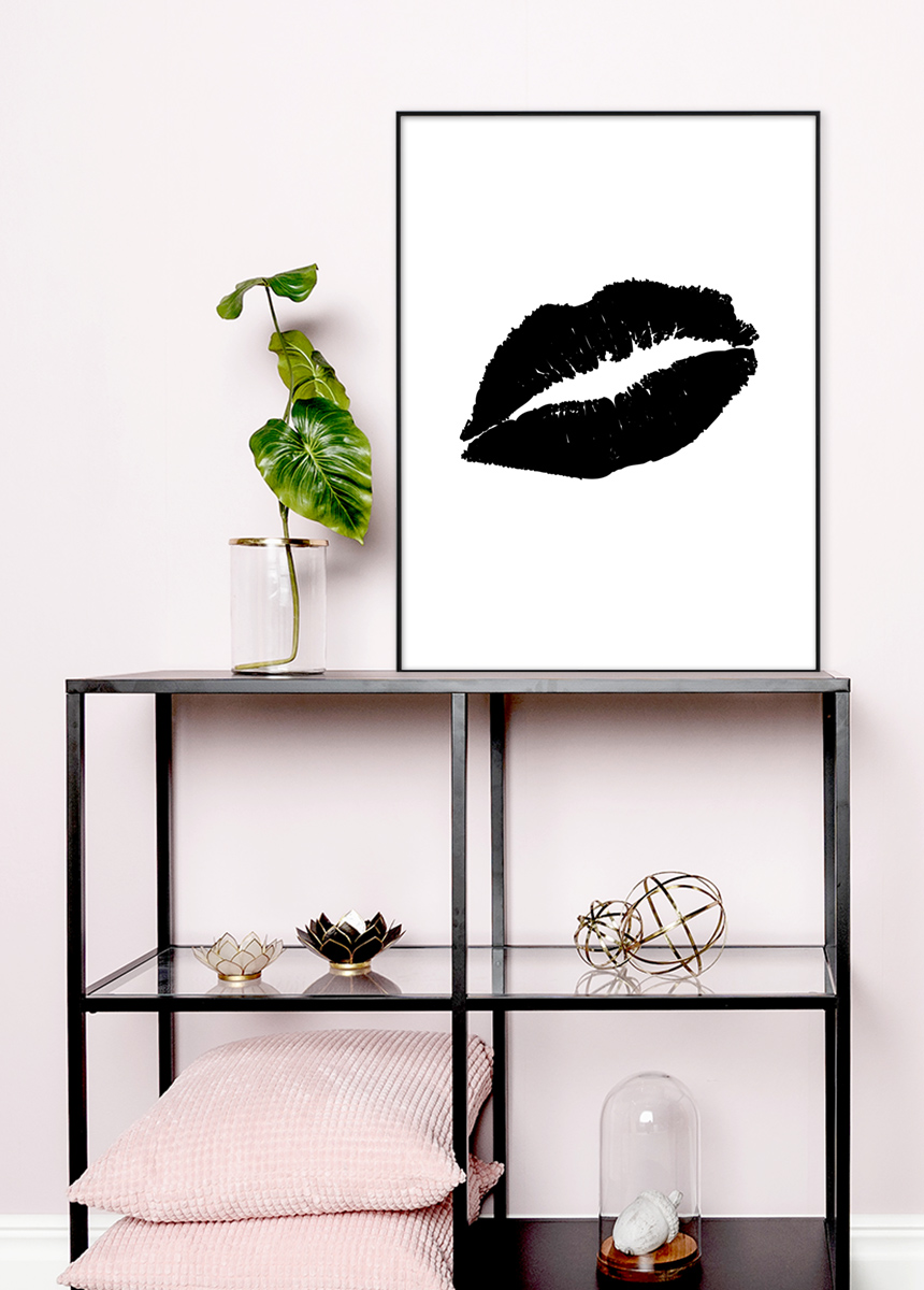 Make the wall more exciting with posters in various designs! This bold poster is white with black rock'n'roll lips in the center. The black and white design matches well with both grayscale interiors and those in pastel or vibrant colours. Why not combine it with a frame or mat in your favourite colour? Black Lips is available in 6 different sizes and price ranges.