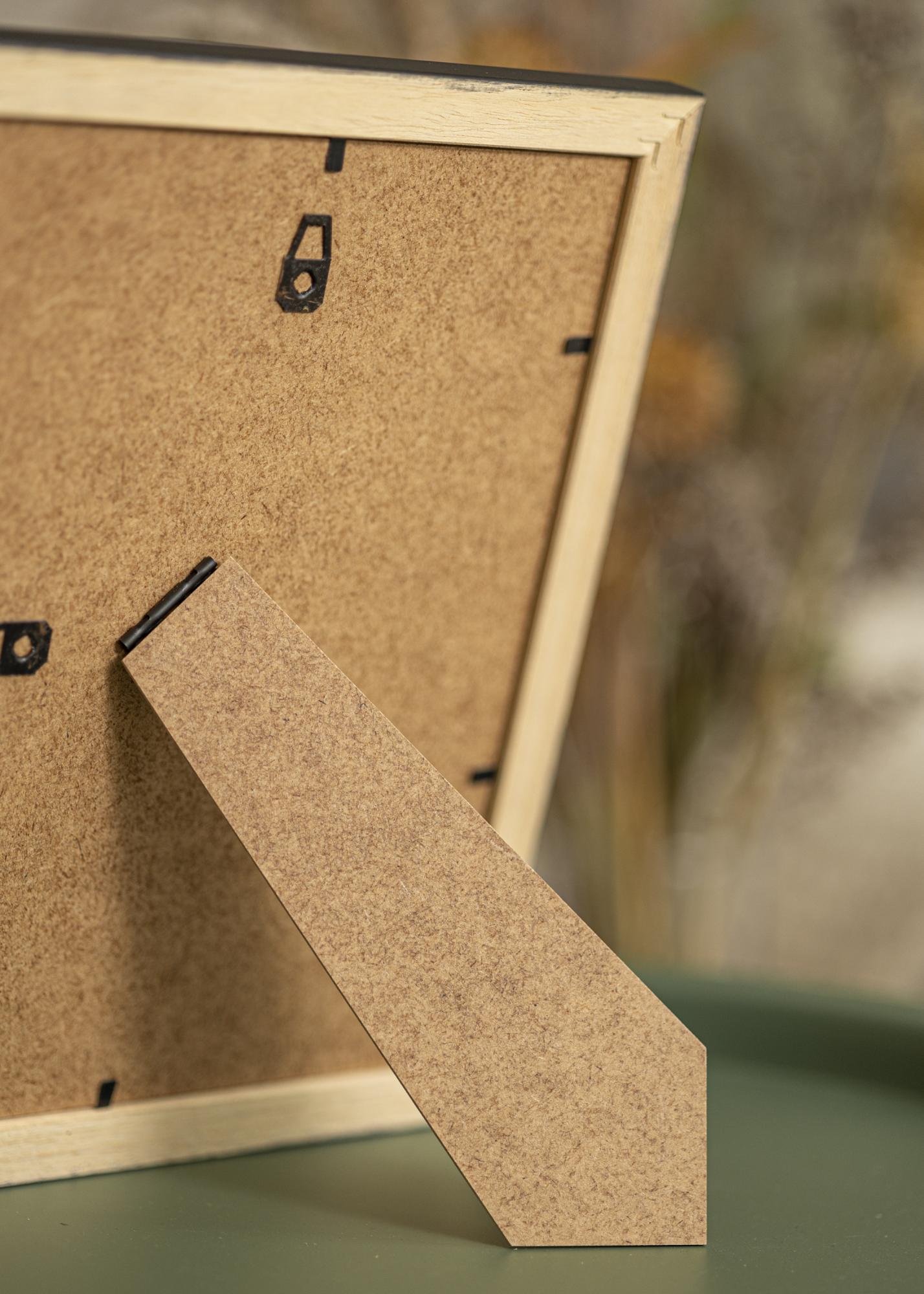 On the back of this picture frame you’ll find brackets for wall mounting your picture in both portrait and landscape formats. This means that you can easily change to a new image regardless of the format. Frames up to 21x29.7 cm also have inbuilt stands which means you can display them on your bedside table or windowsill. You can insert your pictures by loosening the small flexible pins on the back of the frame which allow you to detach the back panel and place your image next to the glass.
