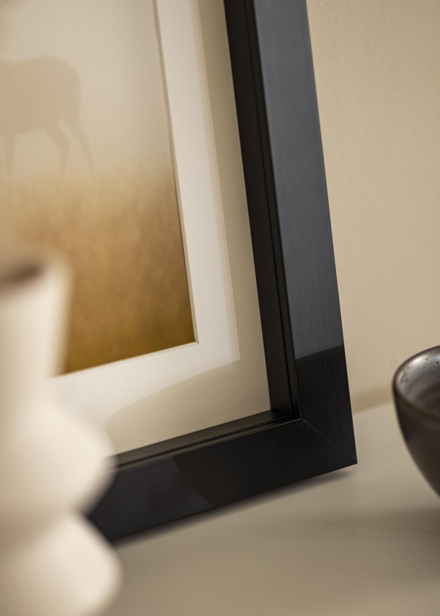 Pine picture frame manufactured in Finland, painted black directly on the wood for a more genuine feeling of wood. "Boxholm Black" has a depth of 43 mm - perfect when you want to frame different kinds of object. Or if you just want the frame to stick out from the wall a little. Included with this picture frame is an extra piece of moulding which you can use to choose between two depths.