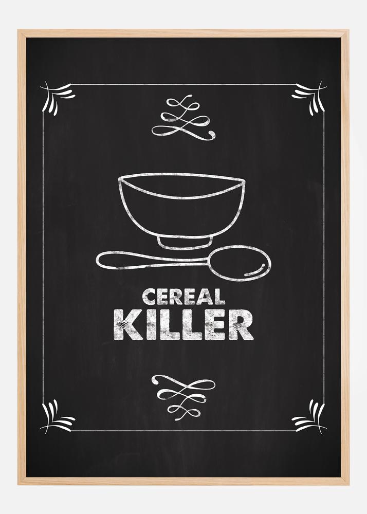 Kitchen posters with a message that's both scary and amusing. Perfect to give as a gift to the chef with a sense of humour or to the horror movie fan who lives on cereal. The graphic print has the feel of being written in chalk on a blackboard and complemented with a black frame with a slim profile to enhance that feeling. The poster works well on a picture wall along with other motifs from the world of cooking.