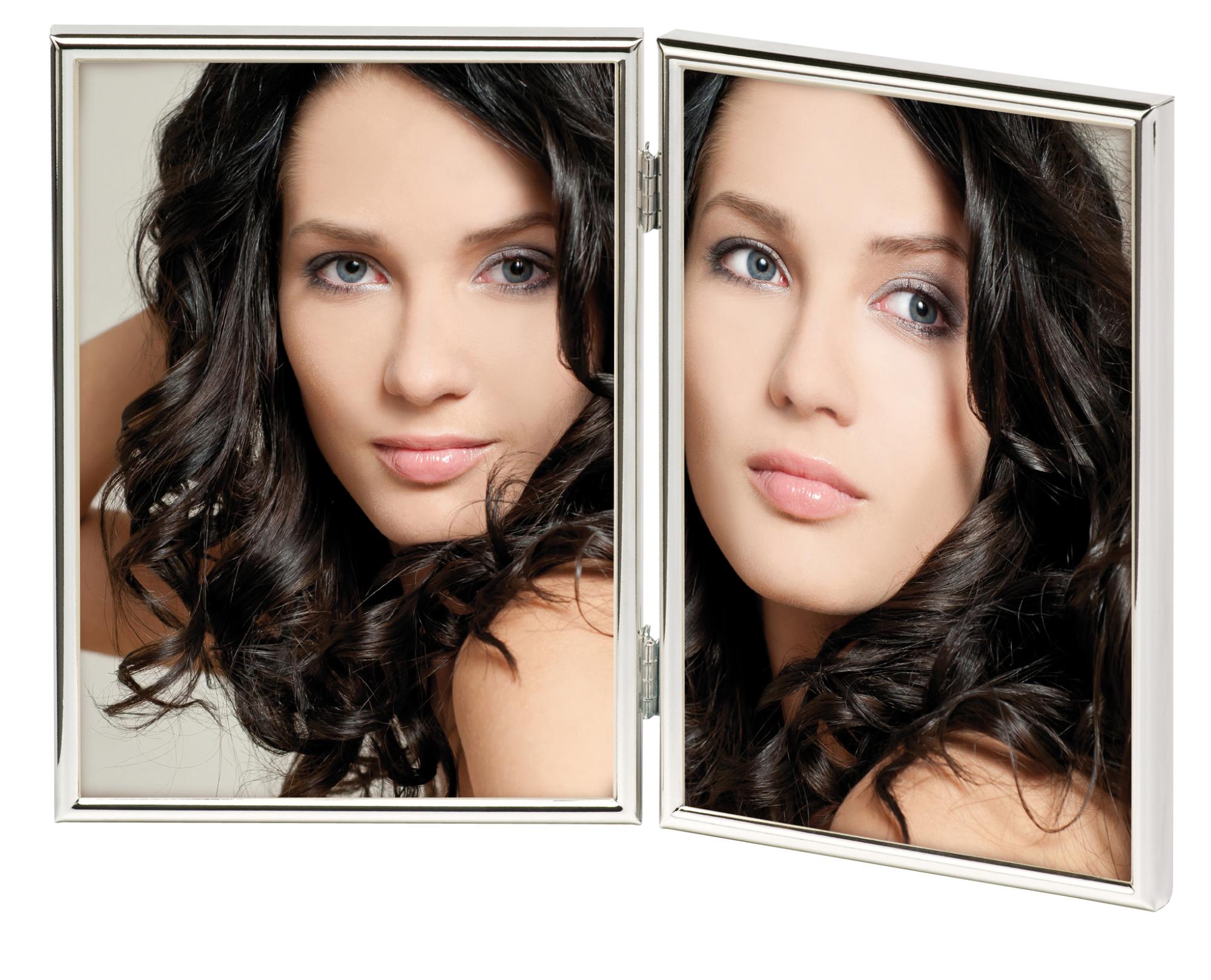 Chloe folding picture frame is an elegant portrait picture frame with rounded edges in new silver. It fits 2 pictures with the dimensions 13x18 cm. Chloe is a high-quality, velvet-backed picture frame from Walther.