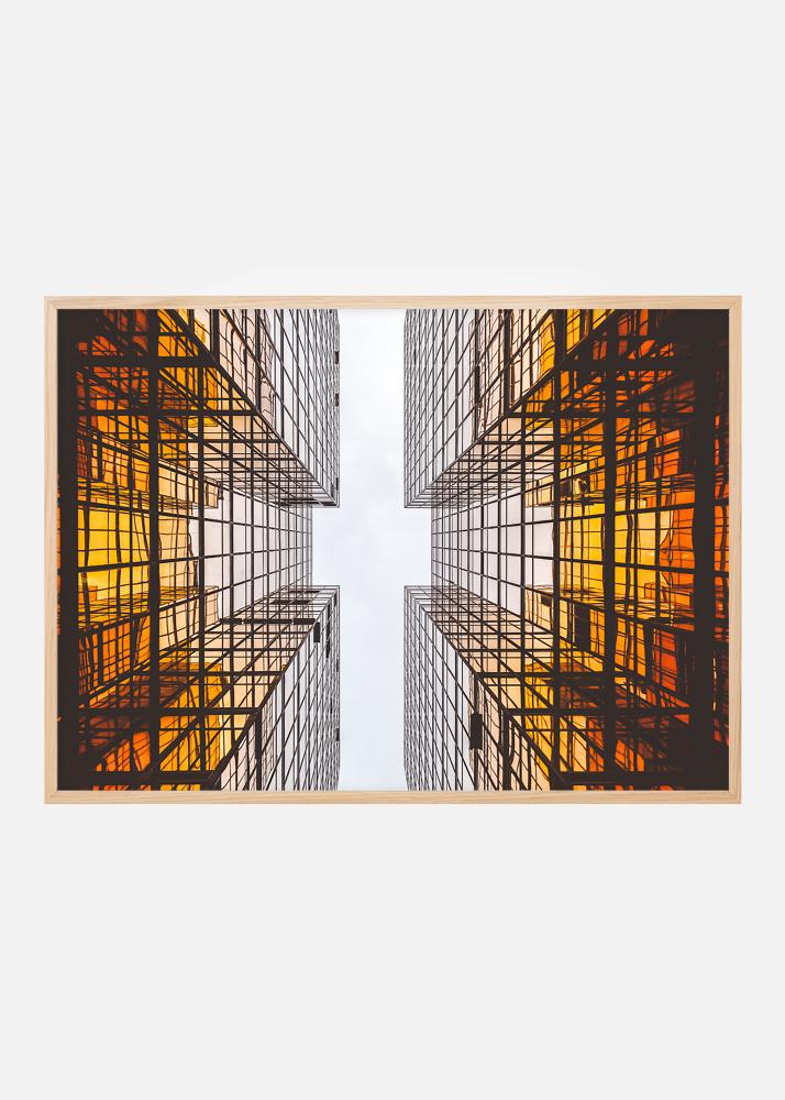 Poster with futuristic architecture that with its graphic lines creates an exciting pattern. The colours fade from deep orange at the base of the building towards the white sky. The poster works well with a thinner frame in both minimalist decor and other styles with graphic elements. Feel free to combine with other posters on exciting architecture or urban environments.