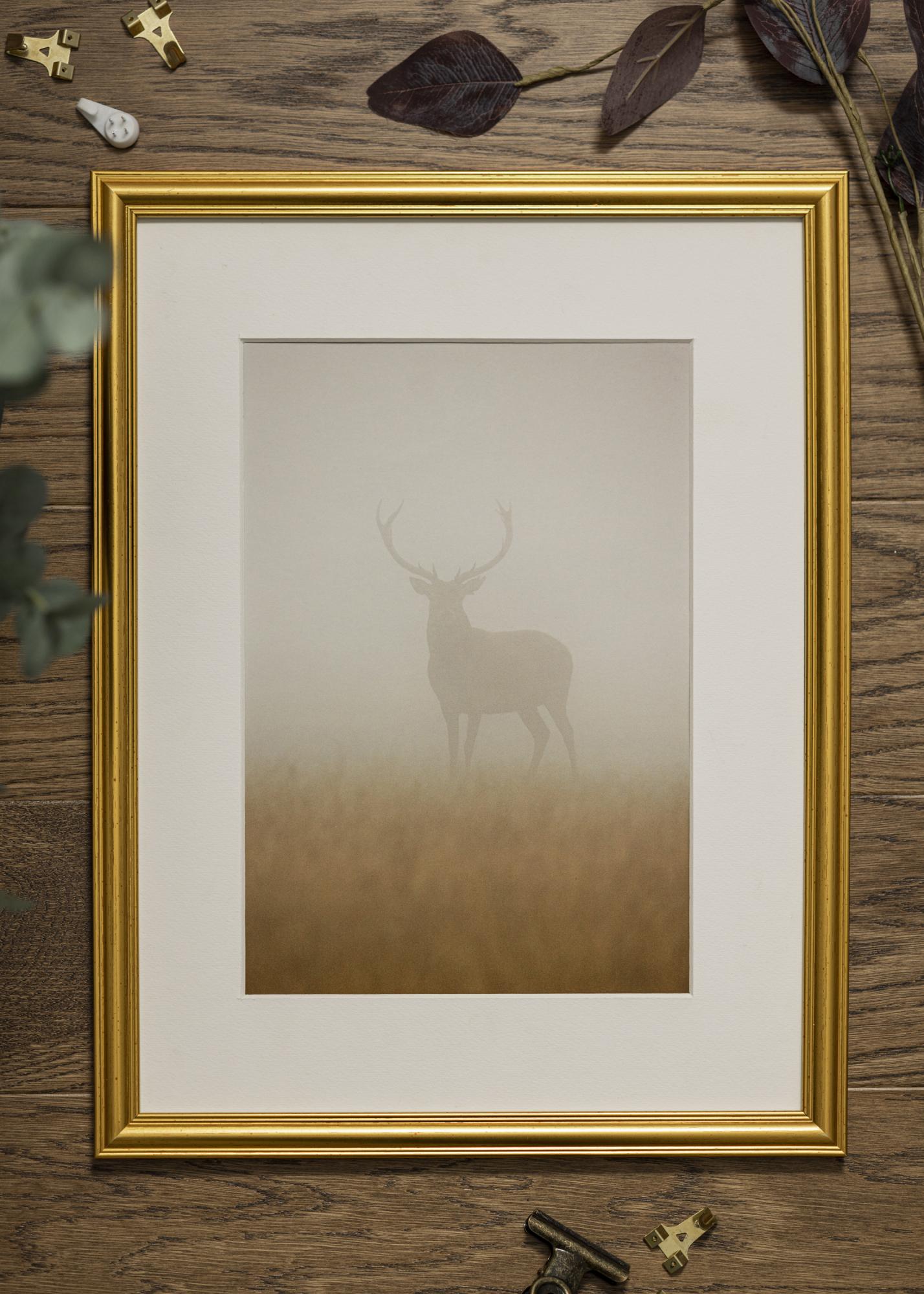 Attractive gold-coloured picture frame with speckled red elements in a classic, timeless design. With its golden colour, this is a picture frame that suits almost all images and settings.
