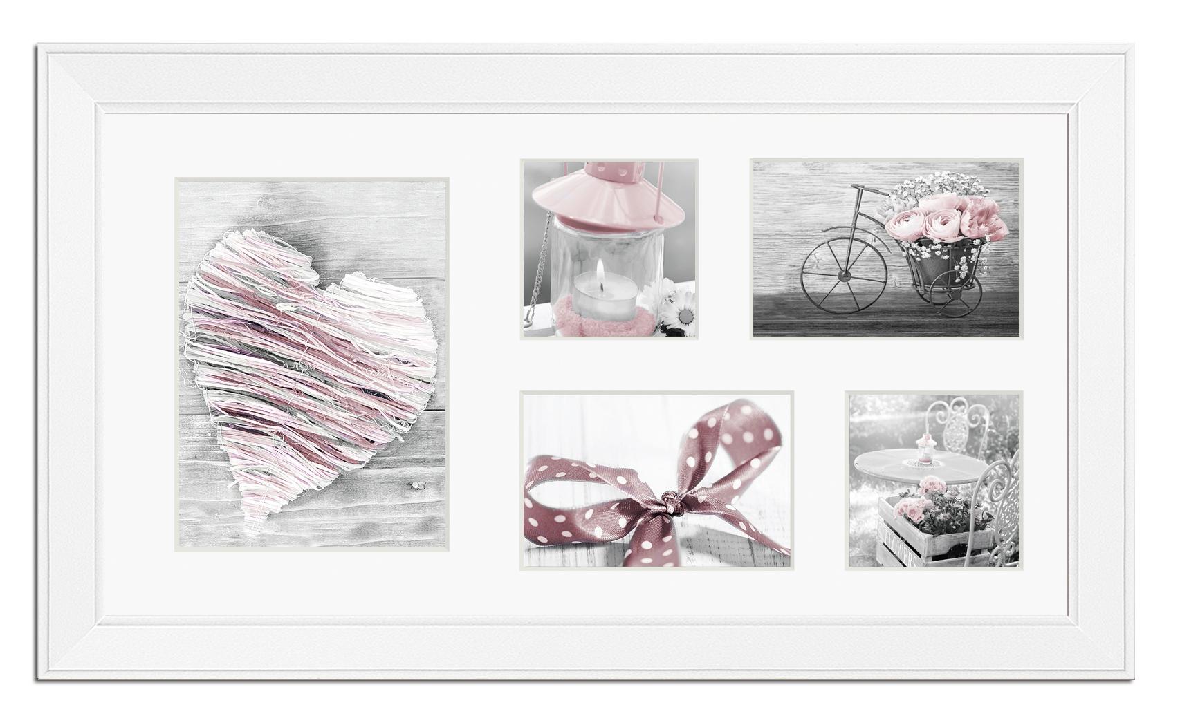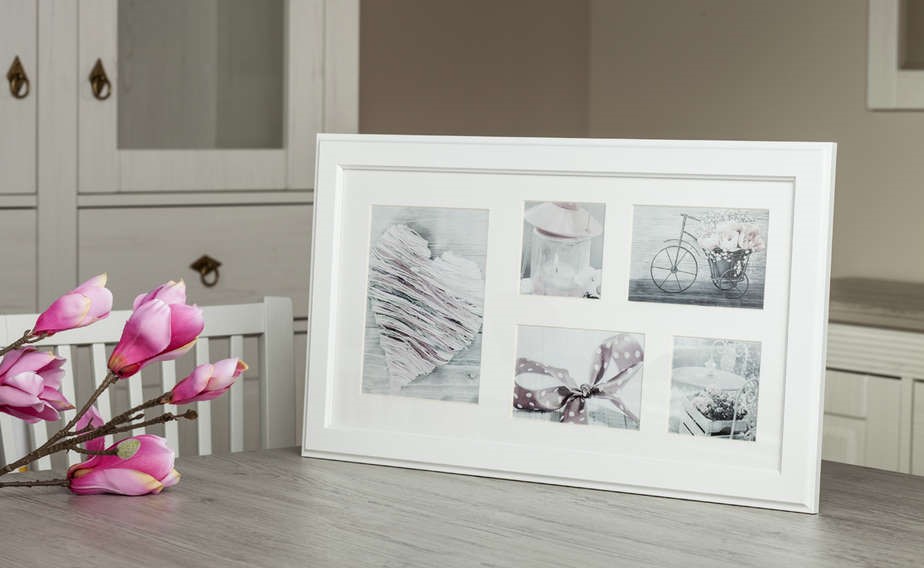Collage picture frame Malmö White - 5 Pictures has space for 5 pictures of varying sizes.