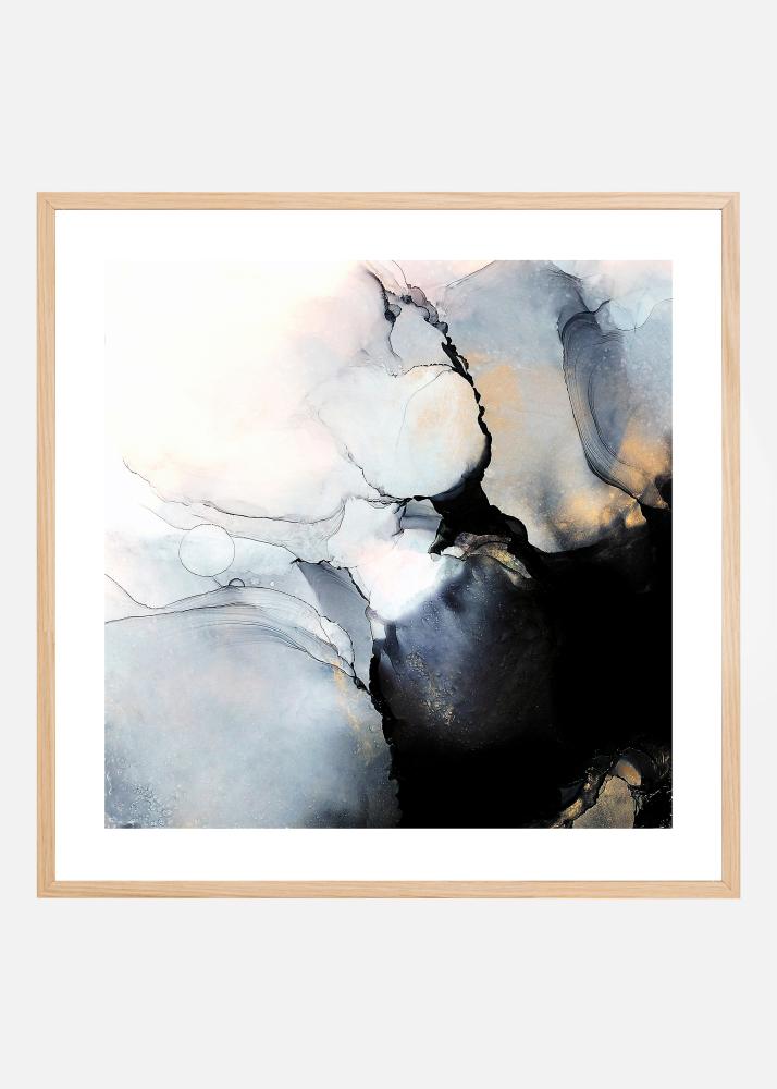 A delightfully abstract art poster in watercolour, in shades of black, blue, and gold with diffuse hints of pink, created by artist Gabriella Roberg. A poster that, among other things, goes excellently with Gabriella's artwork DAWN.