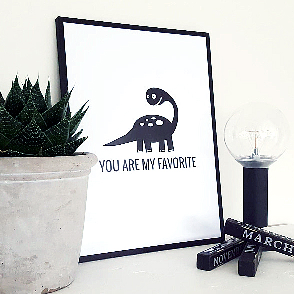 Cute print with a sweet dinosaur to give to your absolute favourite in the world. Decorate the children's room with a graphic sheet that makes the child feel loved, specially developed for all dino enthusiasts. The black, stylish font ensures that the poster fits in regardless of the colour and style of the room. Pairs well with Elephant Dream, Rabbit Happy, Dog Little, Superhero, or Penguin Cool.