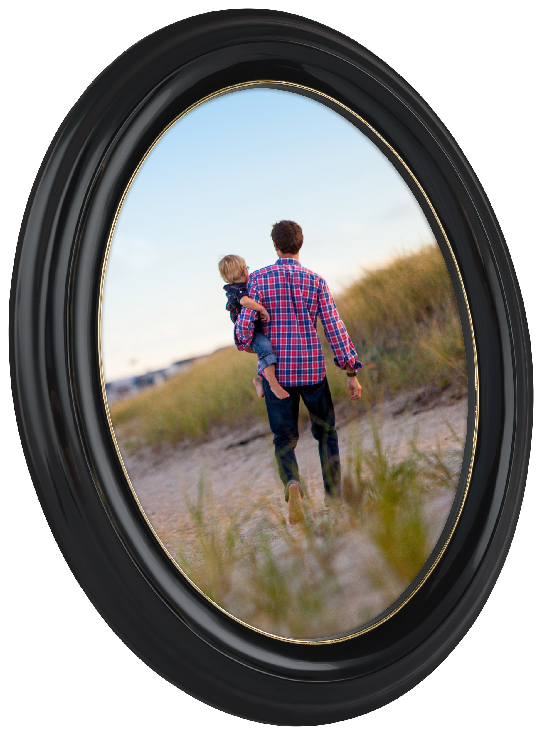 Eiri Mozart is a beautiful black oval frame produced in Finland, which vouches for its high quality. Apart from a thin golden strip around the edge of the image, this picture frame is wholly black.
