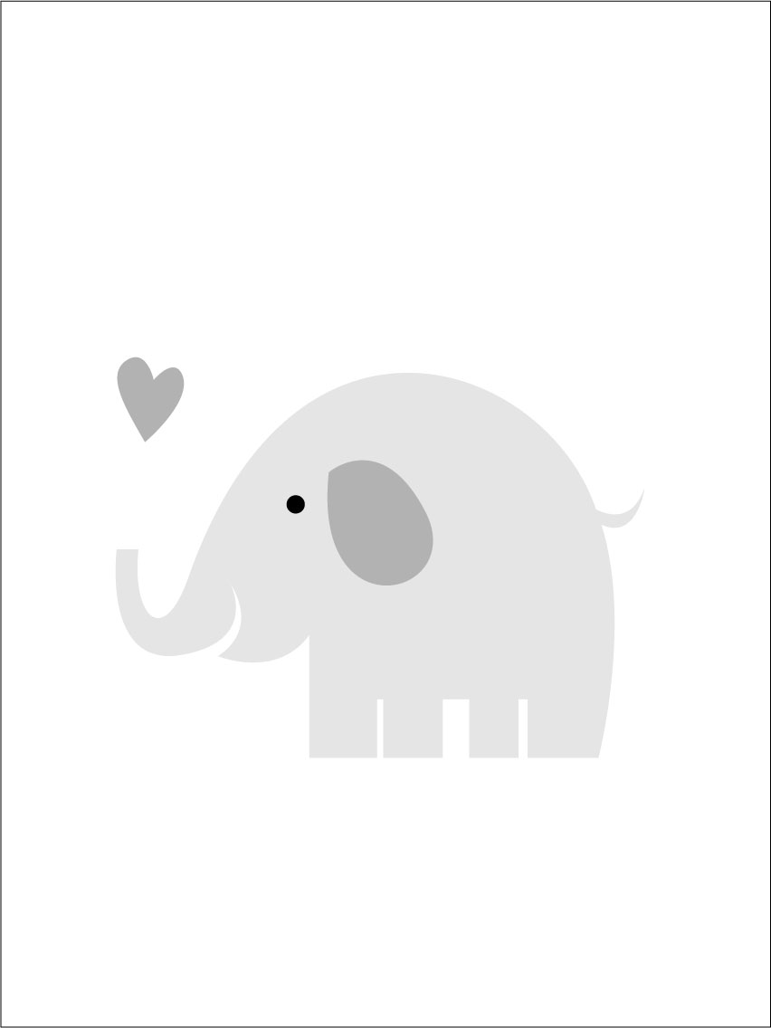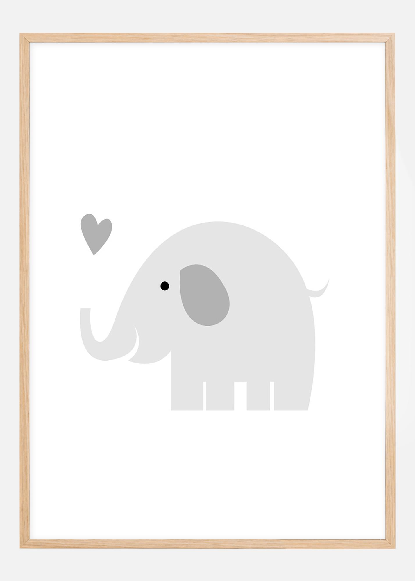 Poster with a graphic print of a cute elephant and a heart in slate grey shade on a white background. Something for those who like all the animals of the savannah, but perhaps most suitable for younger children's rooms. The poster can be combined with other animal or elephant posters in the same colour scheme, to create a wonderful fairy tale feeling in the children's room.