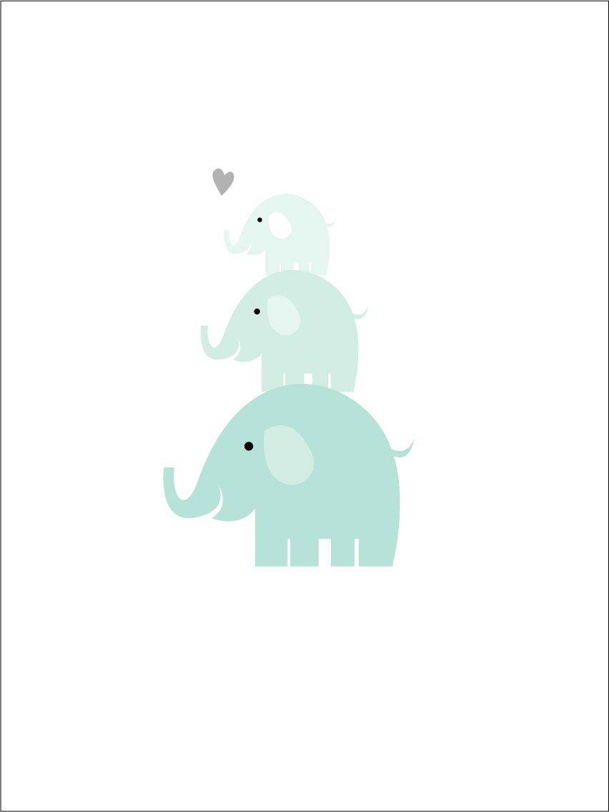 Poster with a printed design featuring a trio of cute elephants in an ice blue shade stacked on top of each other on white paper. Something for those who like all the animals of the savannah, but perhaps most suitable for younger children's rooms. The poster can be combined with other animal or elephant posters in the same colour scheme, to create a wonderful fairy tale feel in the children's room.