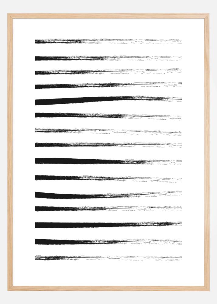 An elegant poster of black lines. The lines start as strong thick black lines from the left, fading out across the right as the brush stroke ends. This painterly piece would look stunning on a bold colour wall to make those lines truly pop.