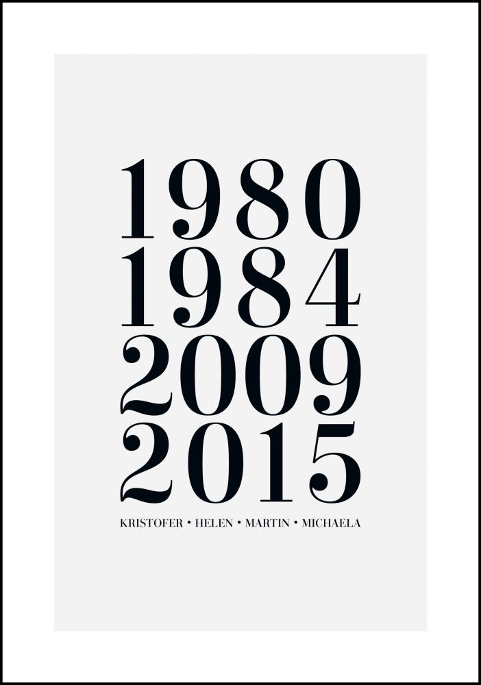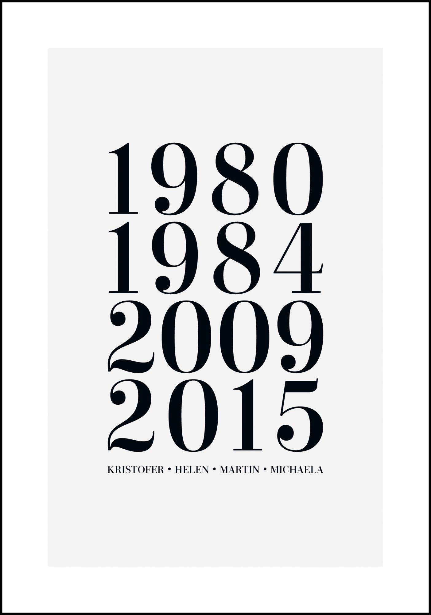 Family picture - 4 Birth years & Names - Grey (21x29,7 cm (A4))