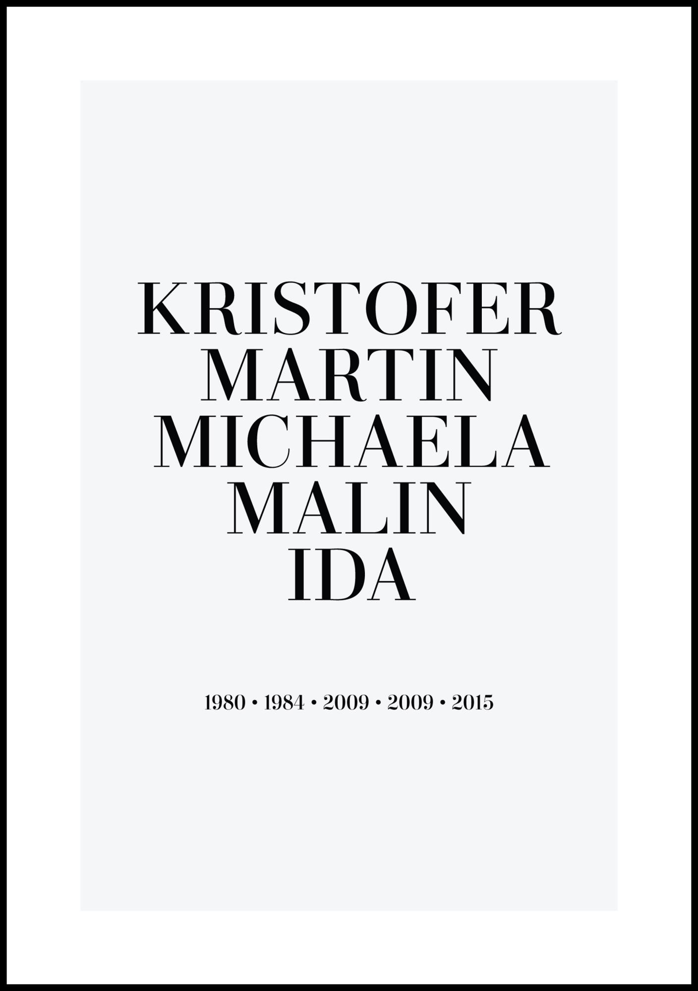 Family picture - 5 Names & Birth years - Grey (21x29,7 cm (A4))