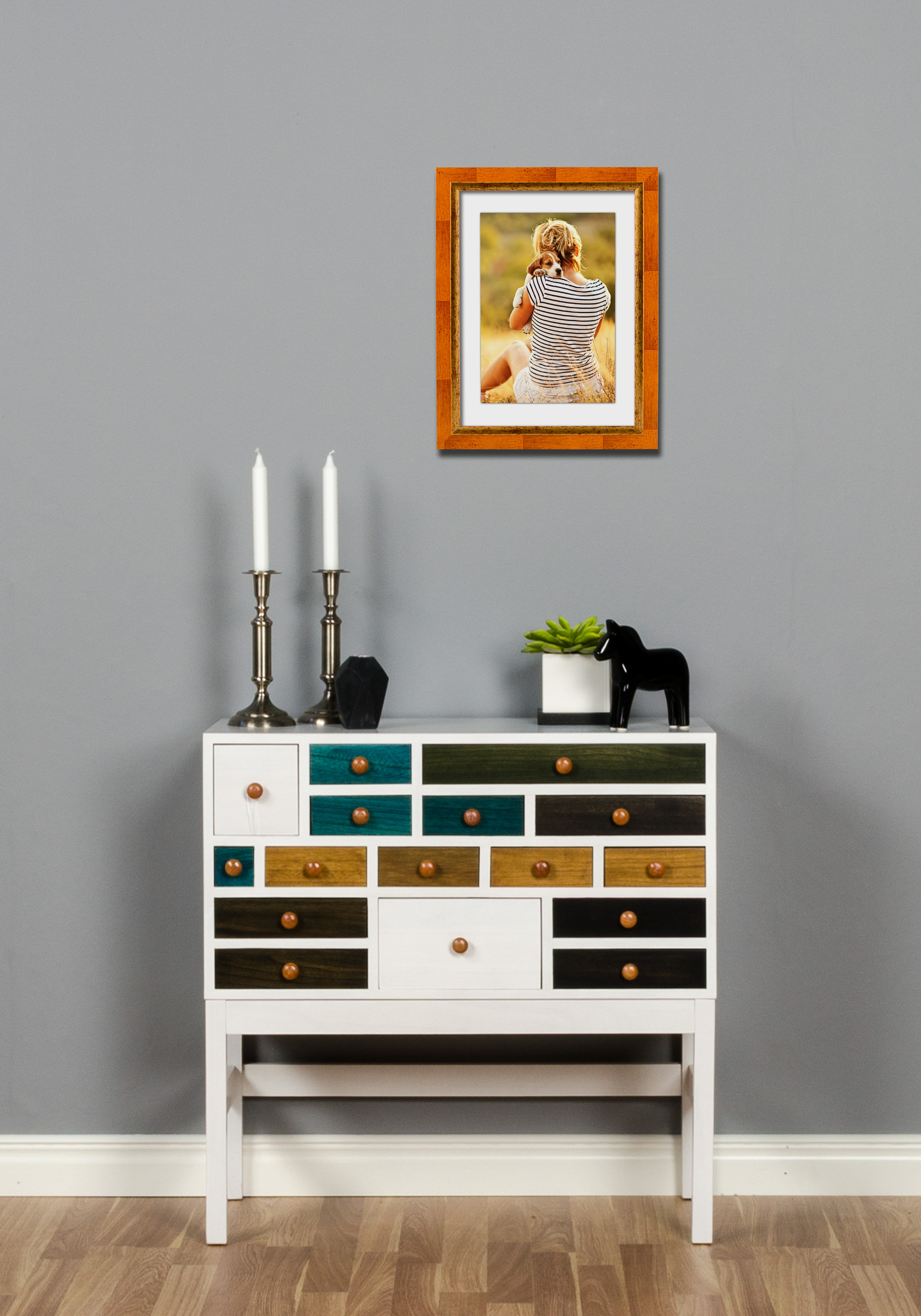 Spruce up your wall at the same time as you show off your nicest pictures! This elegant photo frame has a symmetrical pattern, and worn detailing near the glass. Because this frame can be made to measure, you can be sure that it will fit in wherever you intend to put it!