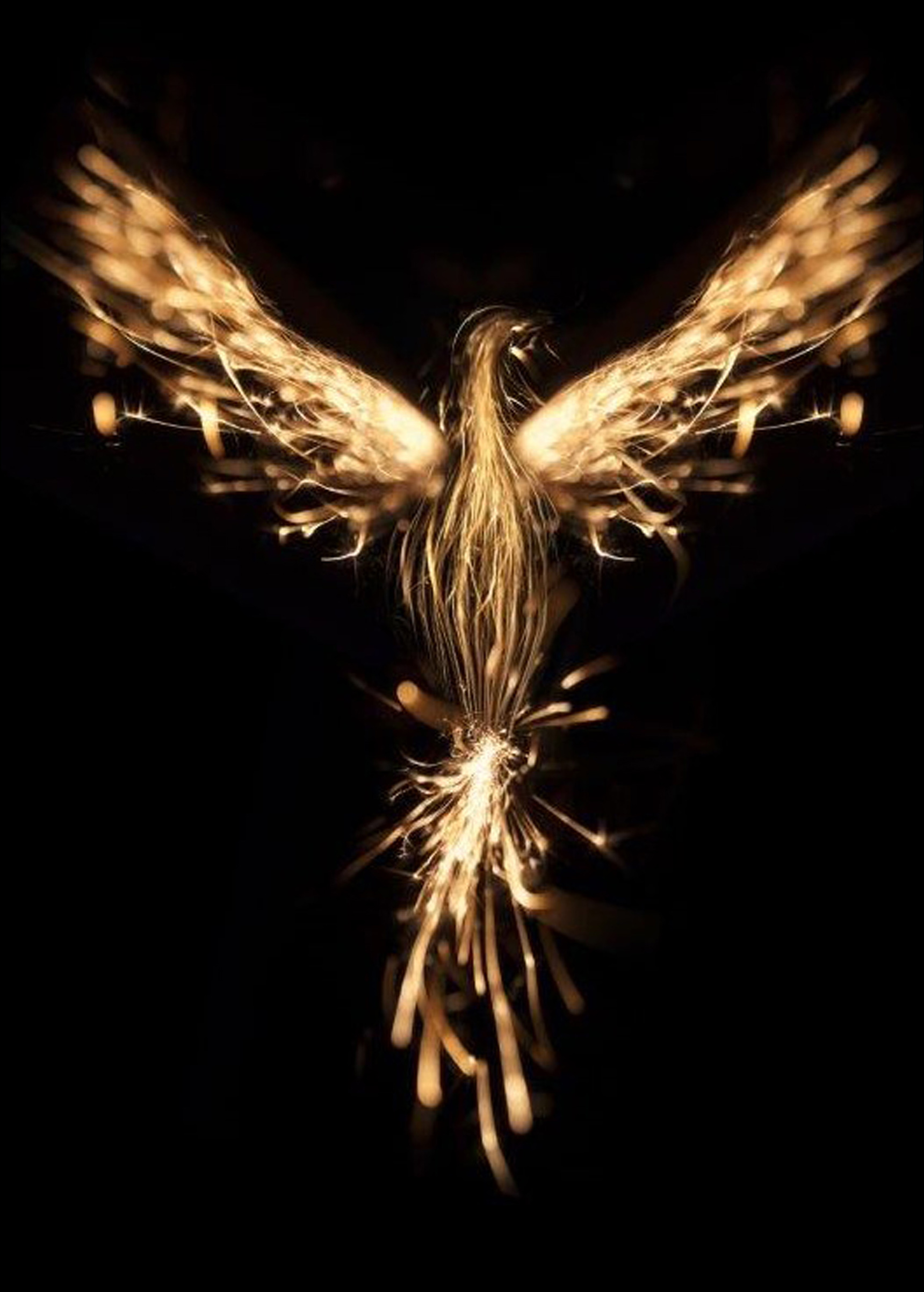 Through graphic art, the Phoenix takes shape in a fireworks display of gold tones against a black background. A warm and comfortable poster in a minimalist format, perfect to match with other favourites in a larger collage.