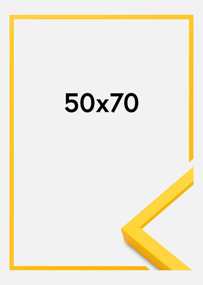 This is a picture frame with a beautiful yellow colour. It is a wooden picture frame made in Sweden with acrylic glass, a type of plastic that is like glass but isn't as fragile. Its edge measures 12 mm wide and 20 mm deep. A colourful picture frame can really help create a lovely, happy atmosphere in your home, and accentuate any picture. Maybe you want to give a bit more life to a black and white poster or give a nice framing to a personal poster with text? In that case, a colourful yellow picture frame is perfect! On the back of this picture frame, you'll find wall fixings allowing you to hang it in both portrait and landscape orientations. The E-Line picture frame comes in several sizes, with this one measuring 50x70 cm.