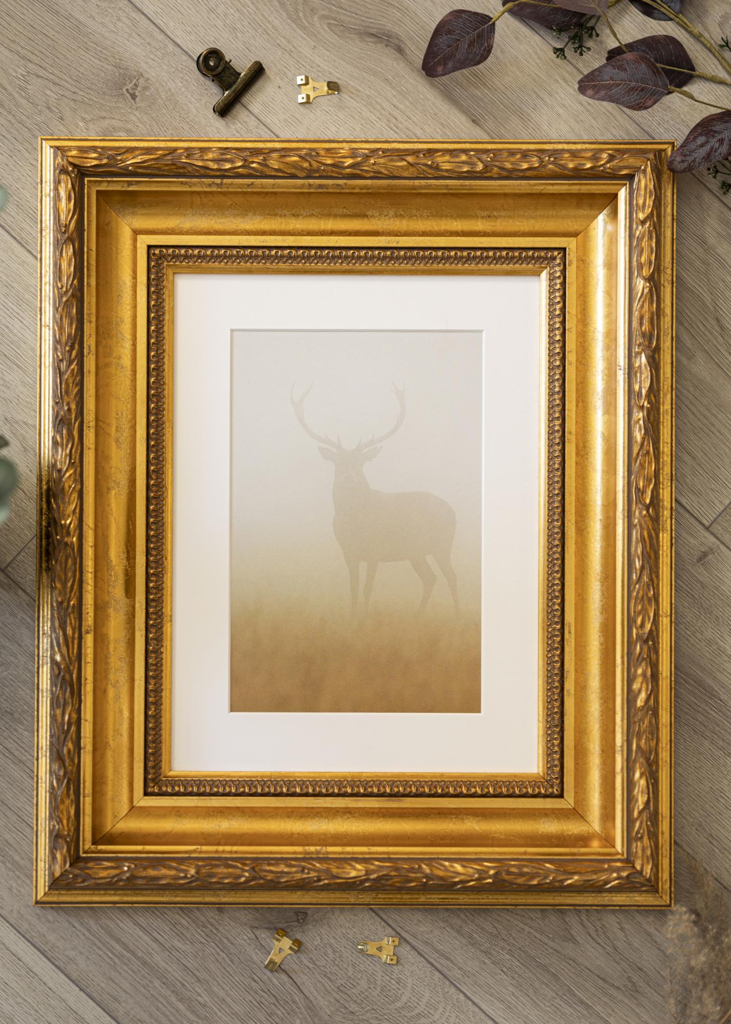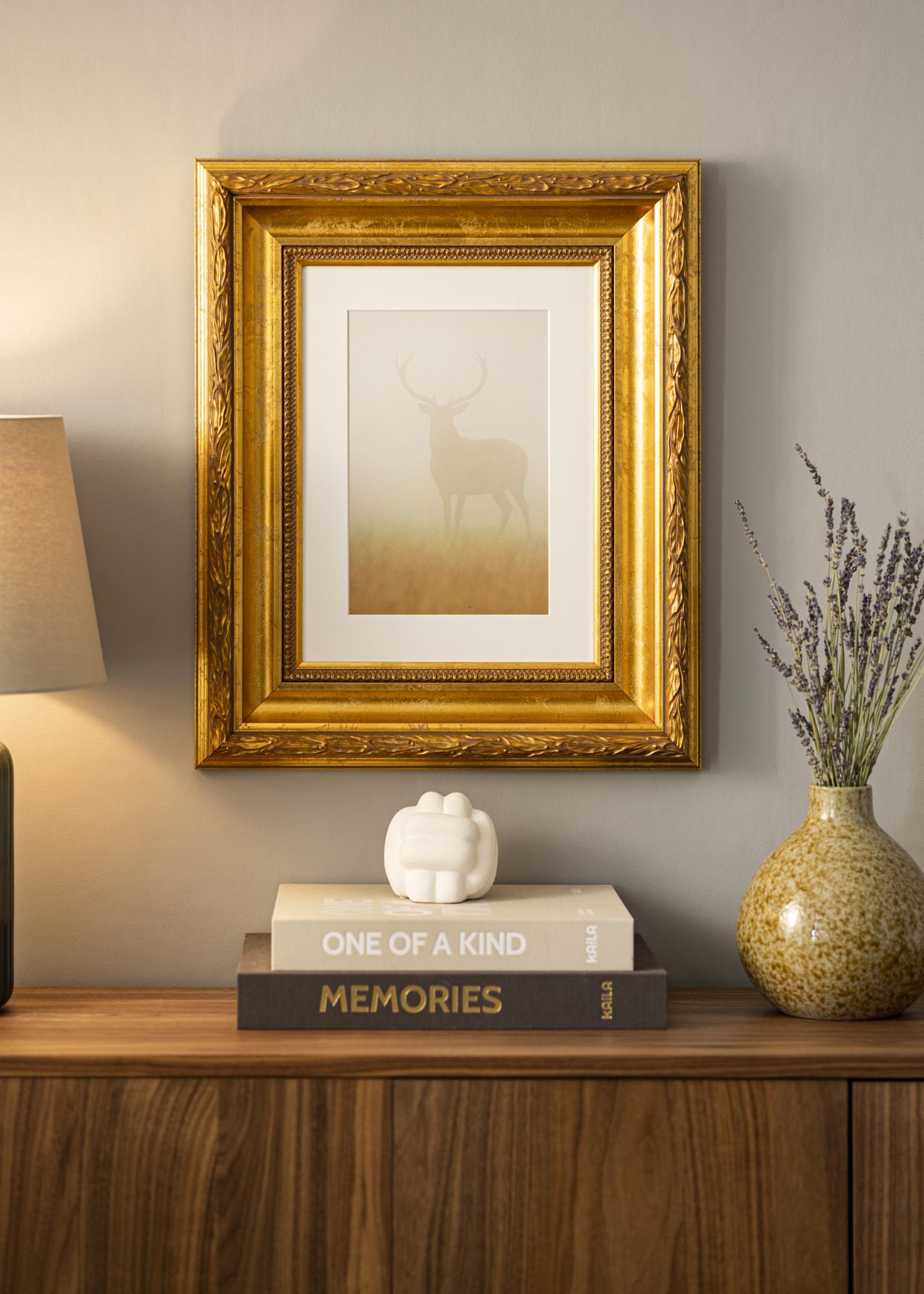 Frame Egypt Ornament Gold is an exclusive photo frame that gives your pictures a sense of elegance and timelessness. With its deep, warm tone in antique gold and decorative details, it becomes a beautiful complement to any room. This picture frame is perfect for those who want to give their artwork or photographs an extra dimension of style and class.