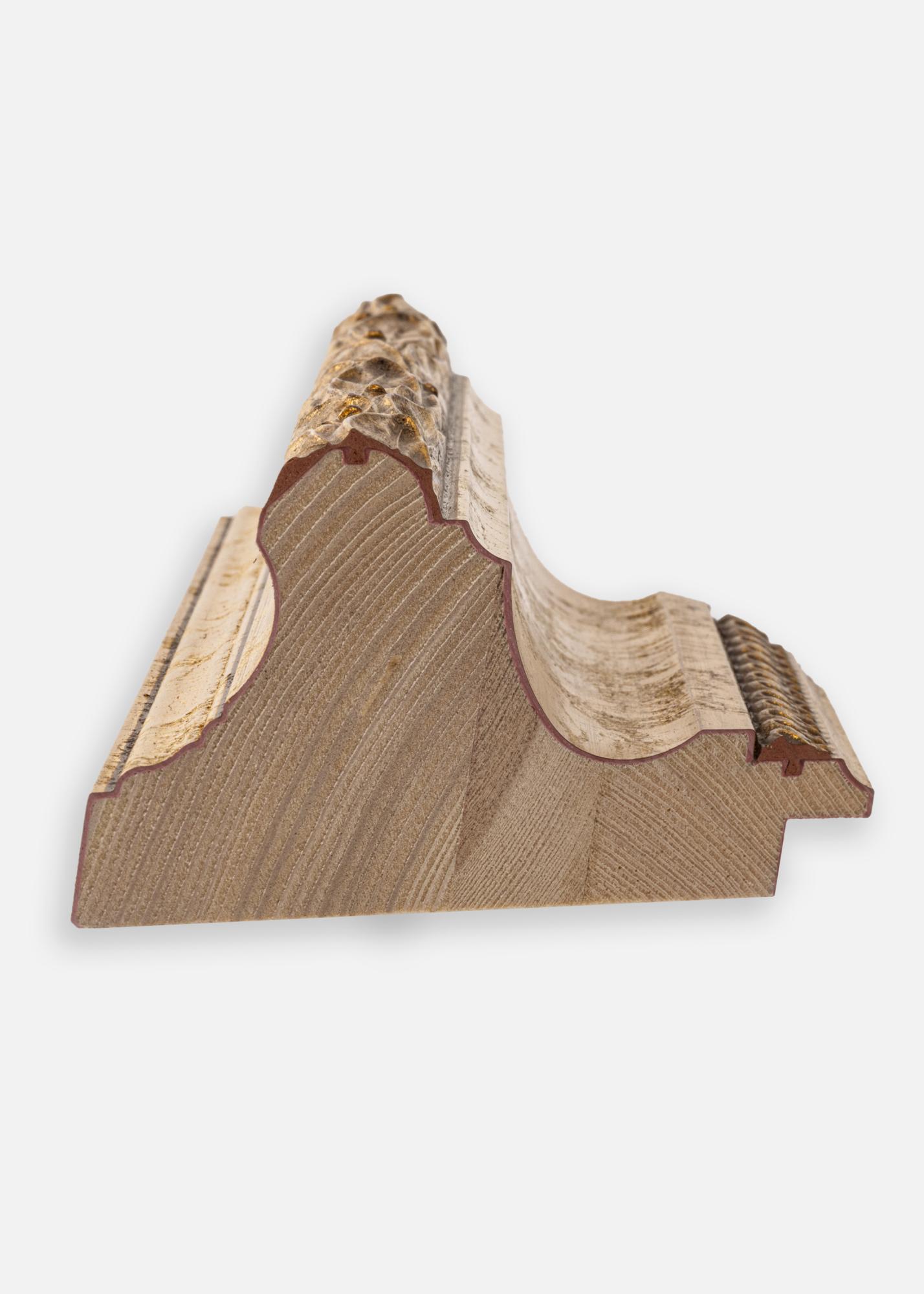 The wide profile of 102 mm gives the frame an impressive presence, while its depth of 56 mm creates a sturdy and stable framing. The small bead-shaped ornaments along the inner edge give a subtle, classical touch that enhances the overall impression. The outer edge is adorned with a wavy leaf pattern, which adds a sophisticated and timeless character to the frame.