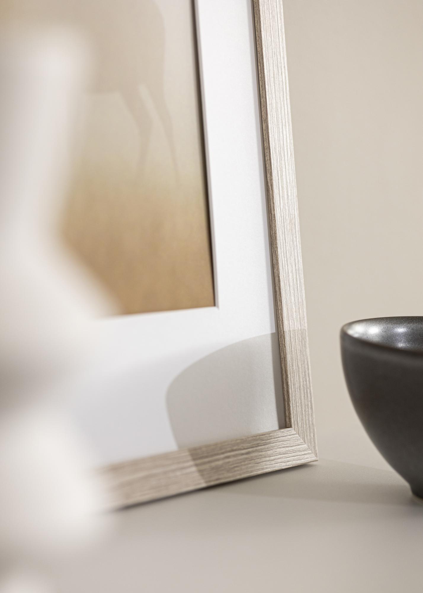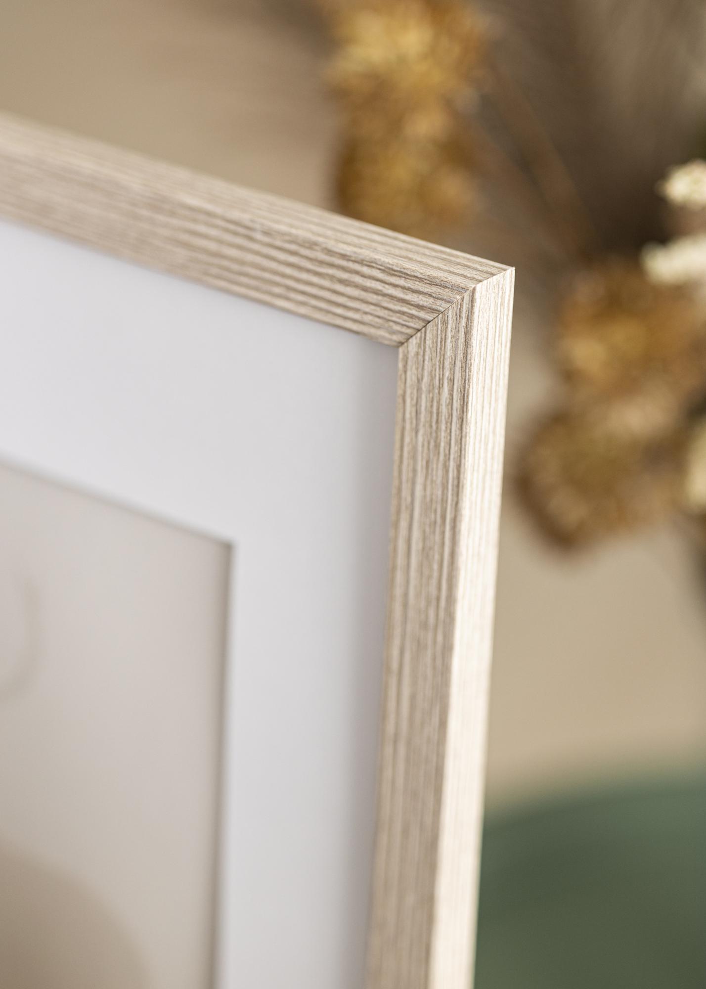 This is a stylish, high quality picture frame, made from pine and with real glass. This attractive picture frame has a "graige" oak colour, which frames your picture in a fashionable way. The Stylish Graige Oak colour comes in several different sizes, allowing you to match several of them together. This particular model suits photos measuring 30x40 cm. This is a photo frame that comes with wall fixings allowing you to hang it up in both portrait and landscape orientations. The frame's edge is 20 mm wide and 14 mm deep.