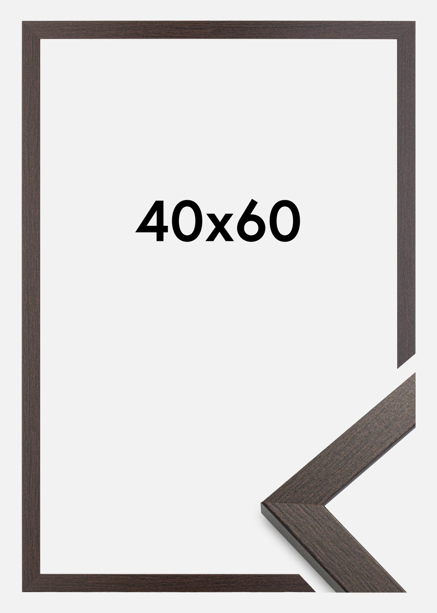 This is a beautiful, high-quality dark brown wooden picture frame that resembles massive wenge wood. The frame's edge is 20 mm width and 14 mm deep. These dimensions make this a substantial and stable frame that will give your images an attractive framing. It has wall fixings on the back, allowing you to hang it up in both portrait and landscape orientations. This picture frame is made from pine and has real glass. The Stylish Wenge frame comes in several different sizes, of which this particular model measures 40x60 cm.