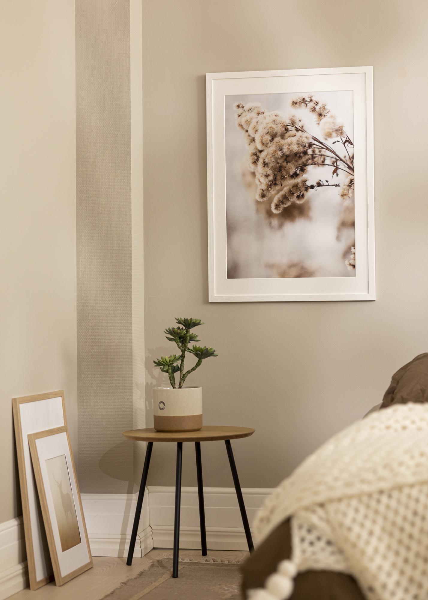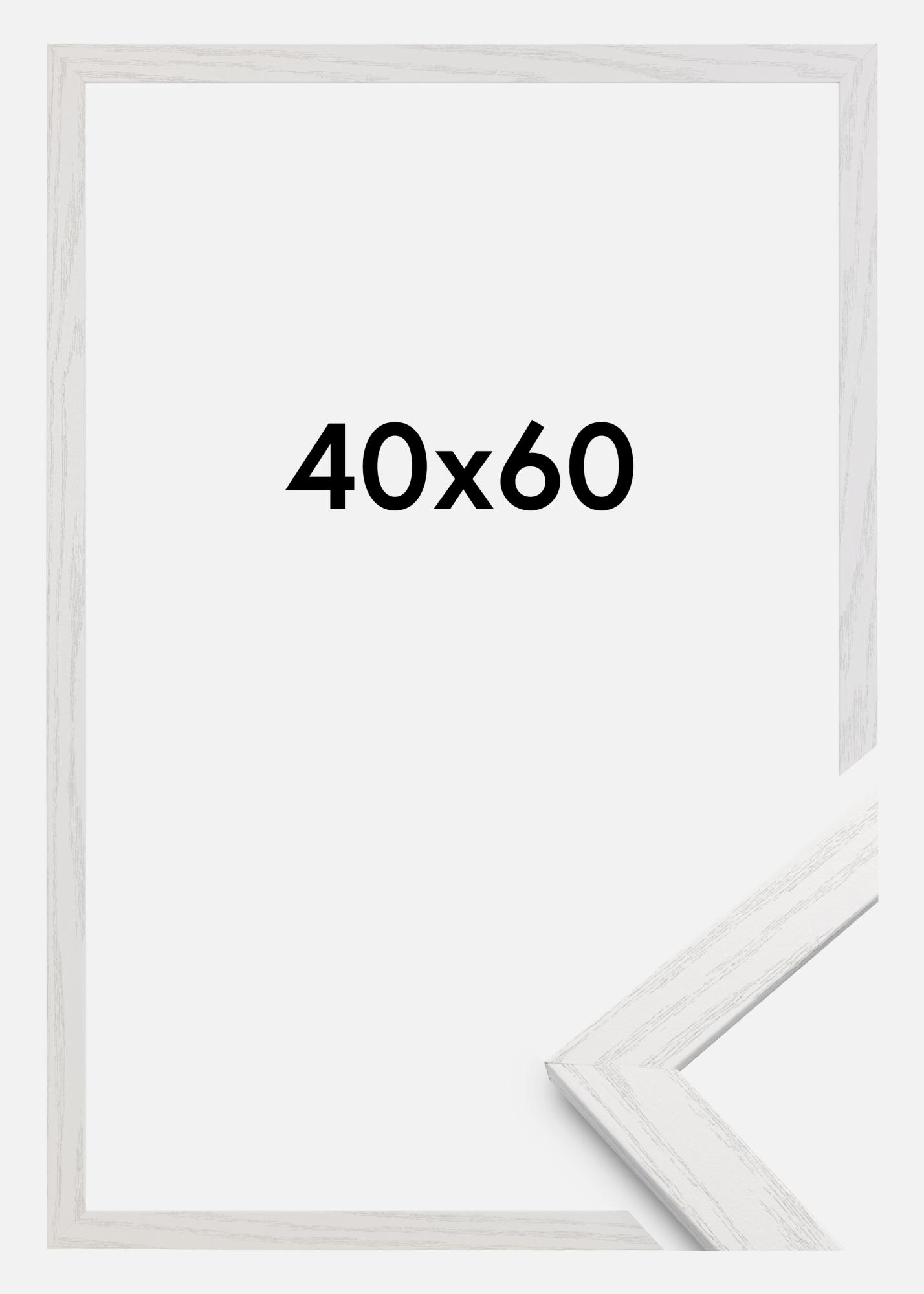 Stylish White Oak is a white wooden picture frame that comes in many different sizes. This picture frame is made from pine and has real glass. The frame's edge is 20 mm wide and 14 mm deep. On the back of the frame, you'll find wall fixings for both portrait and landscape hanging. A classic white wooden picture frame looks just as good in a rural home as it does in a modern one. Thanks to its stylish design, this photo frame can be matched with lots of different posters! This picture frame suits images measuring 40x60 cm.