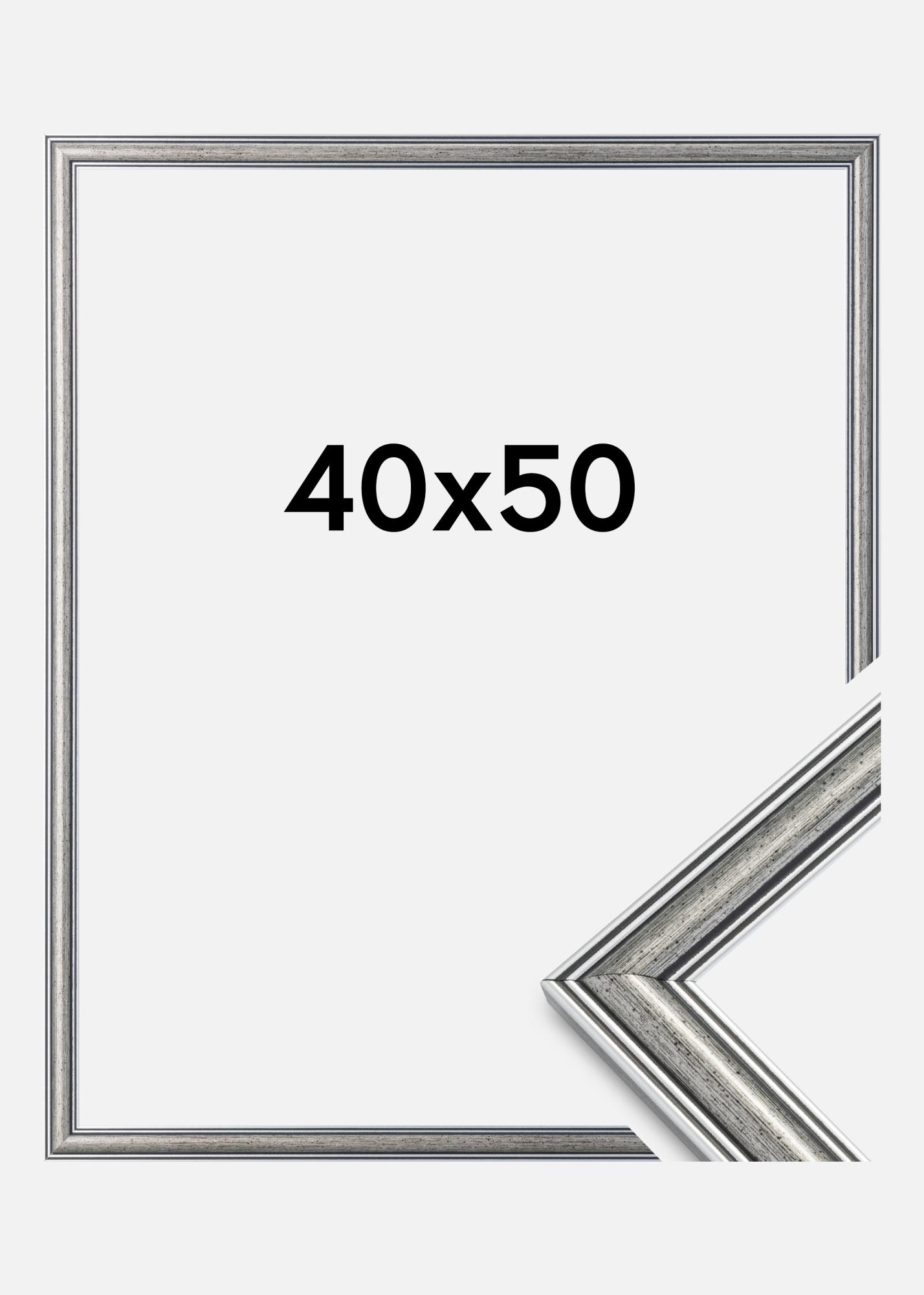 Frigg is a silver picture frame with black lines and black speckled elements. Works great when you're looking for a traditional, wide silver picture frame which goes together with lots of different kinds of picture and setting.