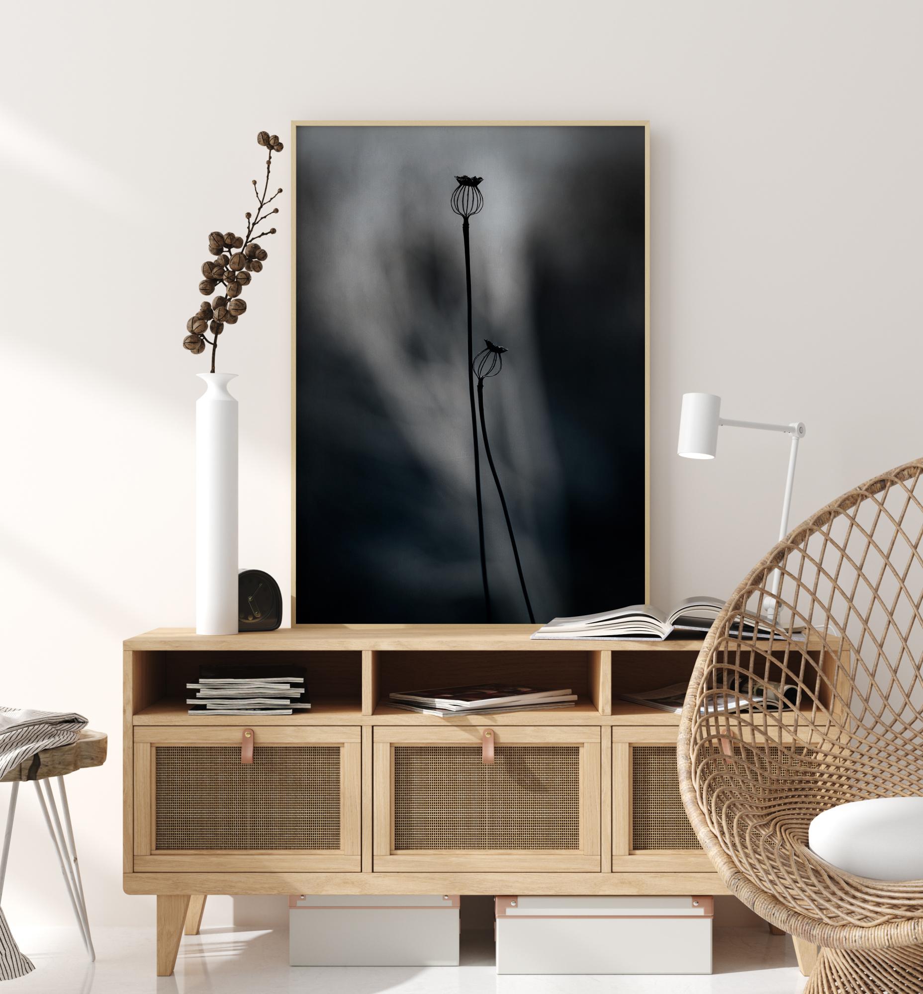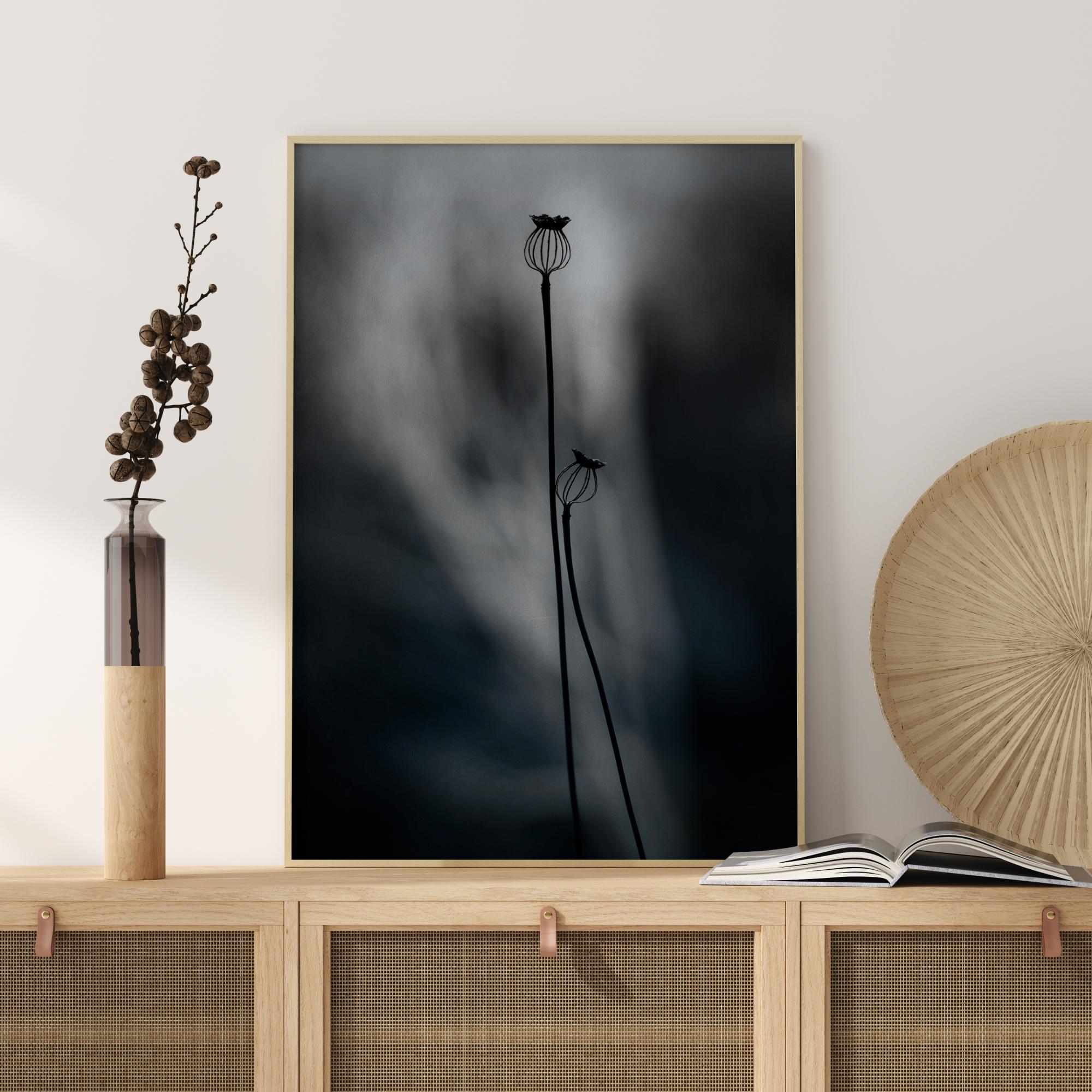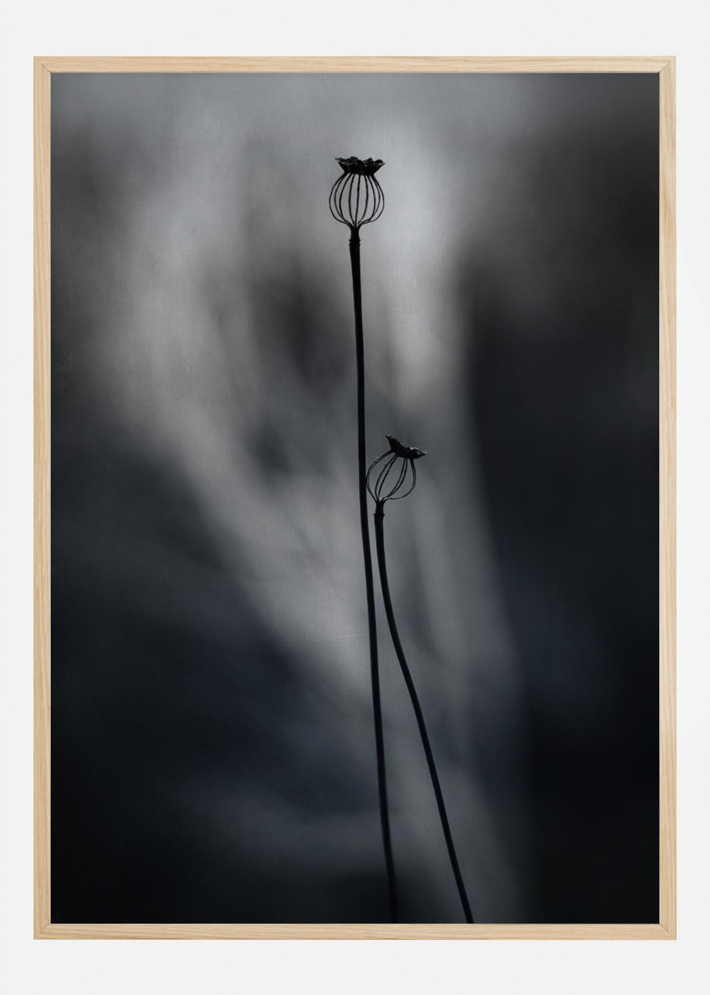 An ethereal poster of two poppies with a light blurred background behind. This abstract image will have you staring for hours. Bring in this stunning mix of static and motion to your home.