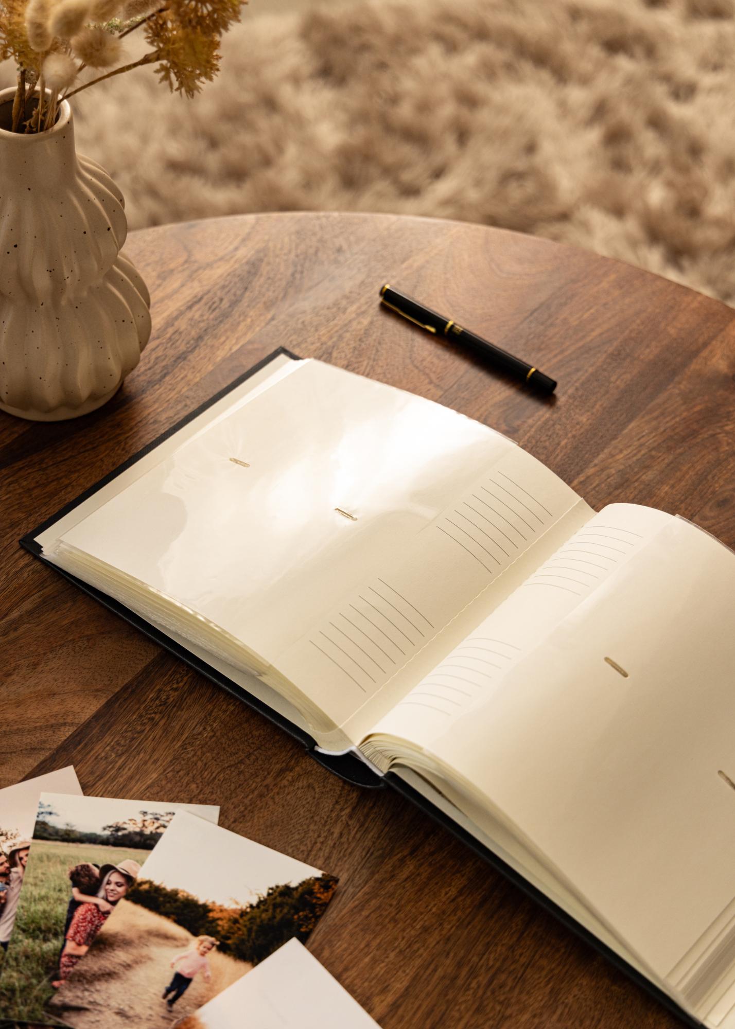 Personal photo album with black cover from Walther, with space for 200 10x15cm pictures. Mount your pictures with ease in this album with its practical stick-in pockets. You can set a personal touch on this album with your own 7.5x7.5 cm picture on the front. The album has white pages with space for 2 pictures on every page, and next to every picture is space for your own handwritten notes. The album sheets are, of course, acid-free.