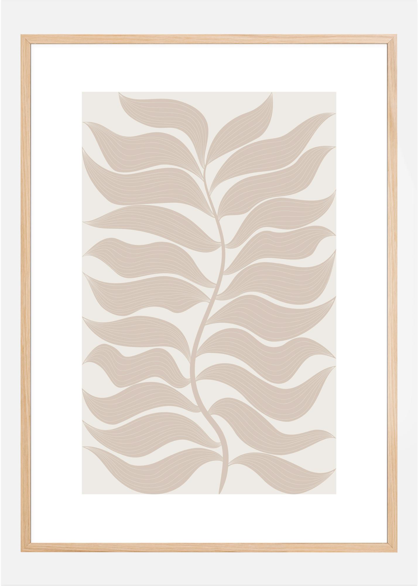 A botanical poster of a leaf. This delicate painting portrays a soft, gentle image of eleven leaves on each side of the main stem. Set on a white background, this is the perfect print for any nature lover or anyone interested in leaves.