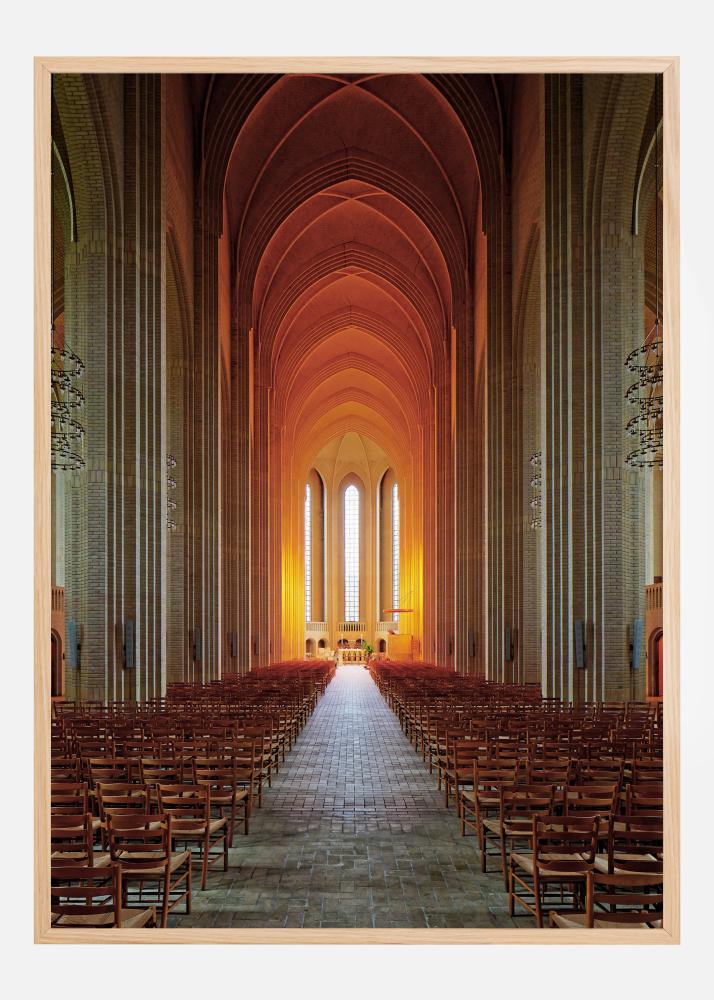 A breathtaking architectural print inside a church. The long aisle leading up to the altar, the high ceiling and the stone columns give a very peaceful feeling. The bright orange light reflecting through the windows creates a feeling of warmth and harmony. Feel the peace and tranquility in this print.