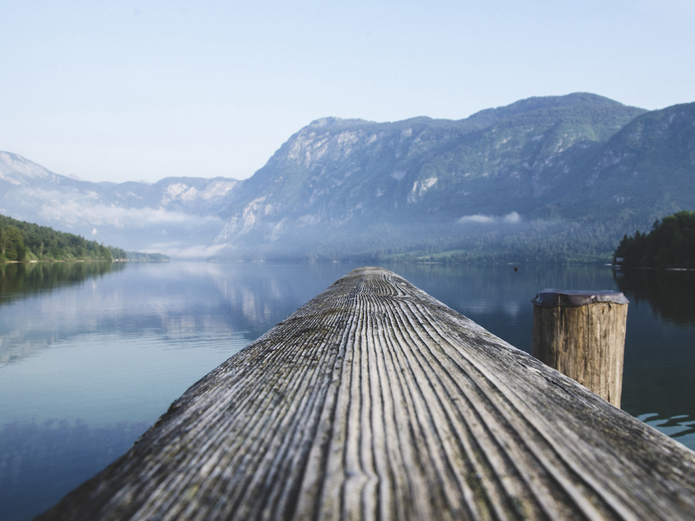 View of a magnificent fjord landscape from a weathered pier. Landscape print in blue tones that fits just as well as a single painting on the wall as it does together with marine accessories or other paintings. Complement with a grey wooden frame to enhance the colours in the painting, or a thinner black frame for a more minimalist expression.