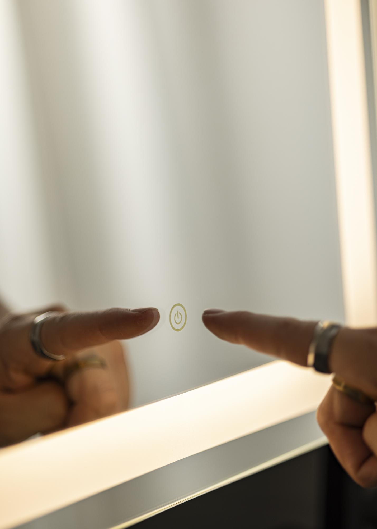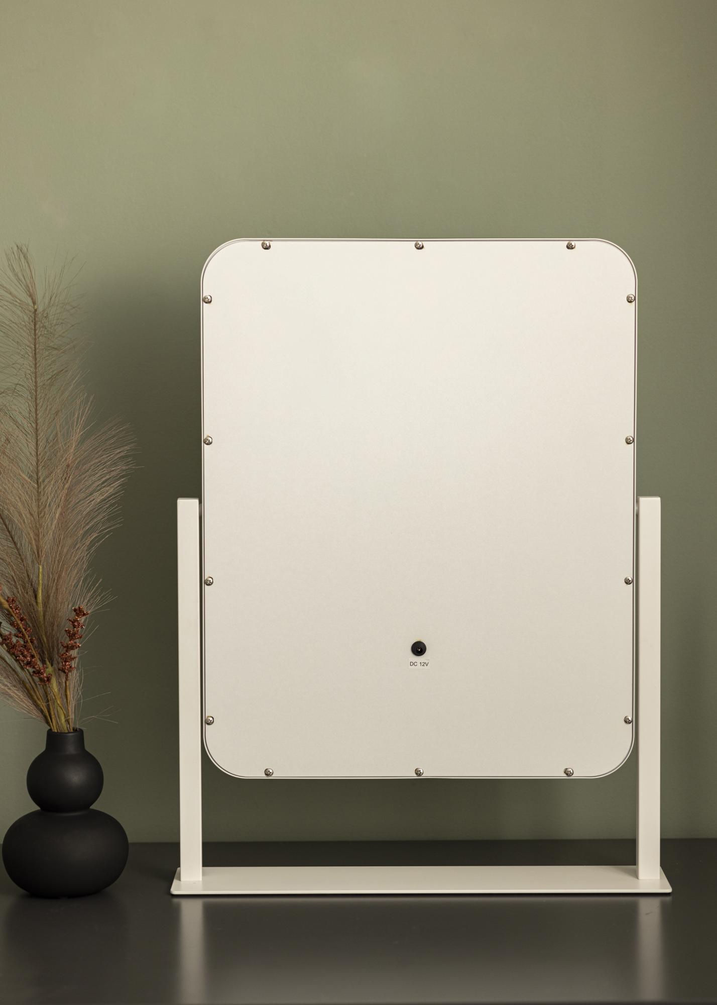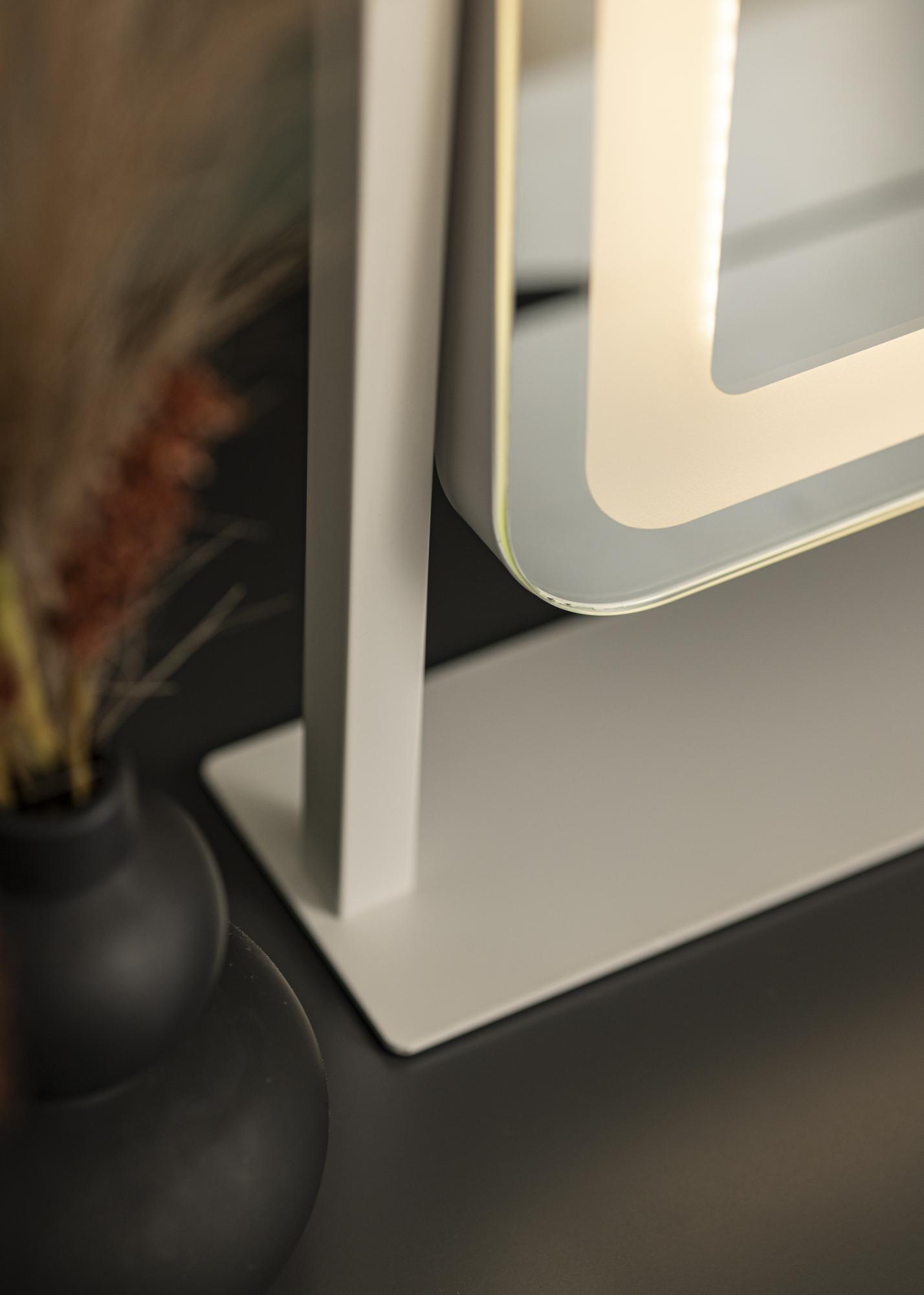 A makeup mirror for those who are attracted to fashionable design! This Swedish design mirror from the brand KAILA has an elegant shade of white and a frosted border with integrated LED lighting around the mirror glass. The LED lighting gives out a warm, white 3000K light – perfect for applying makeup. You can light it by by simply touching the button on the screen, and then adjusting the light strength by holding the button for a few seconds. This makeup mirror measures 45x60 cm, and can be angled so that you can easily see your reflection from different angles!