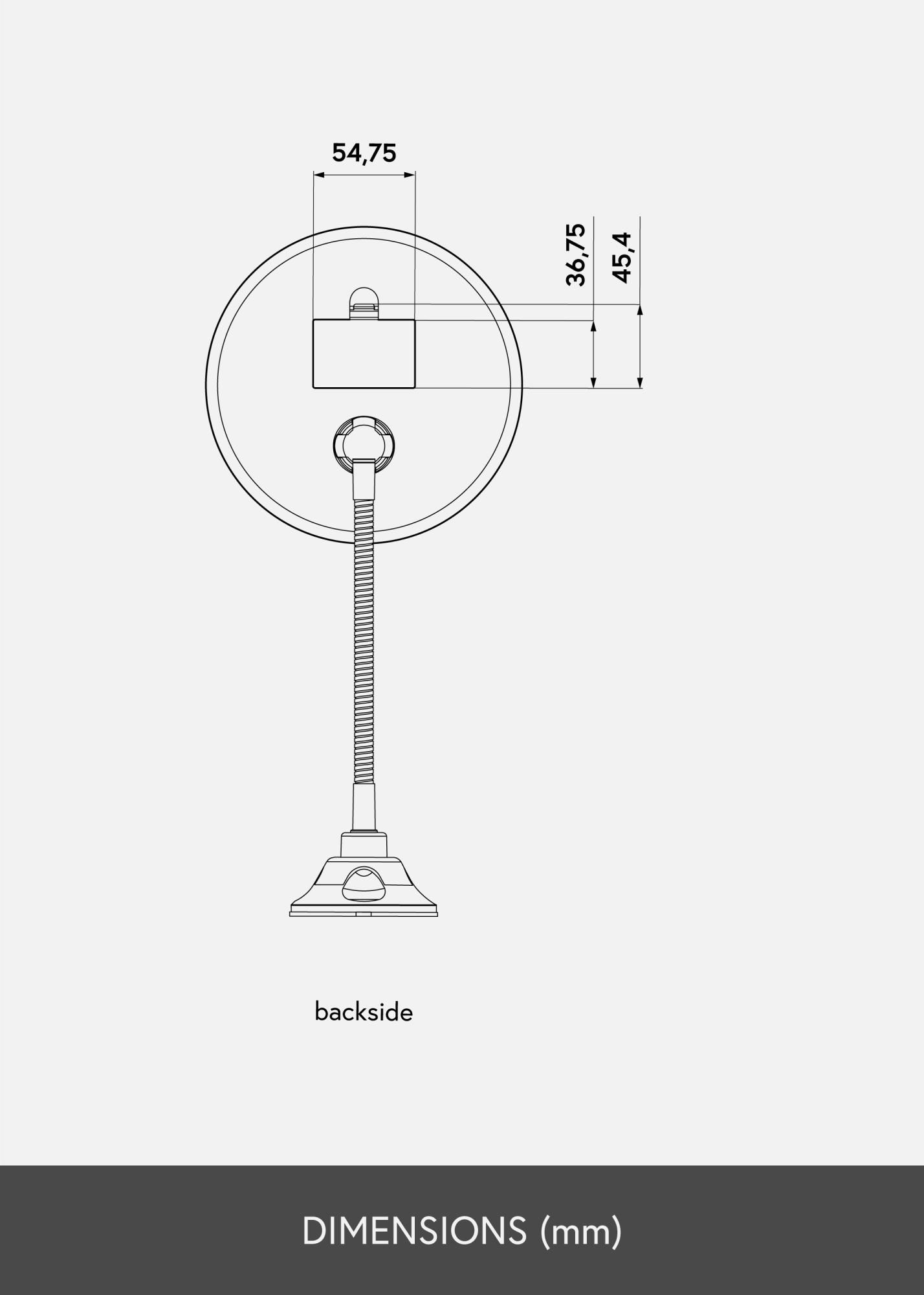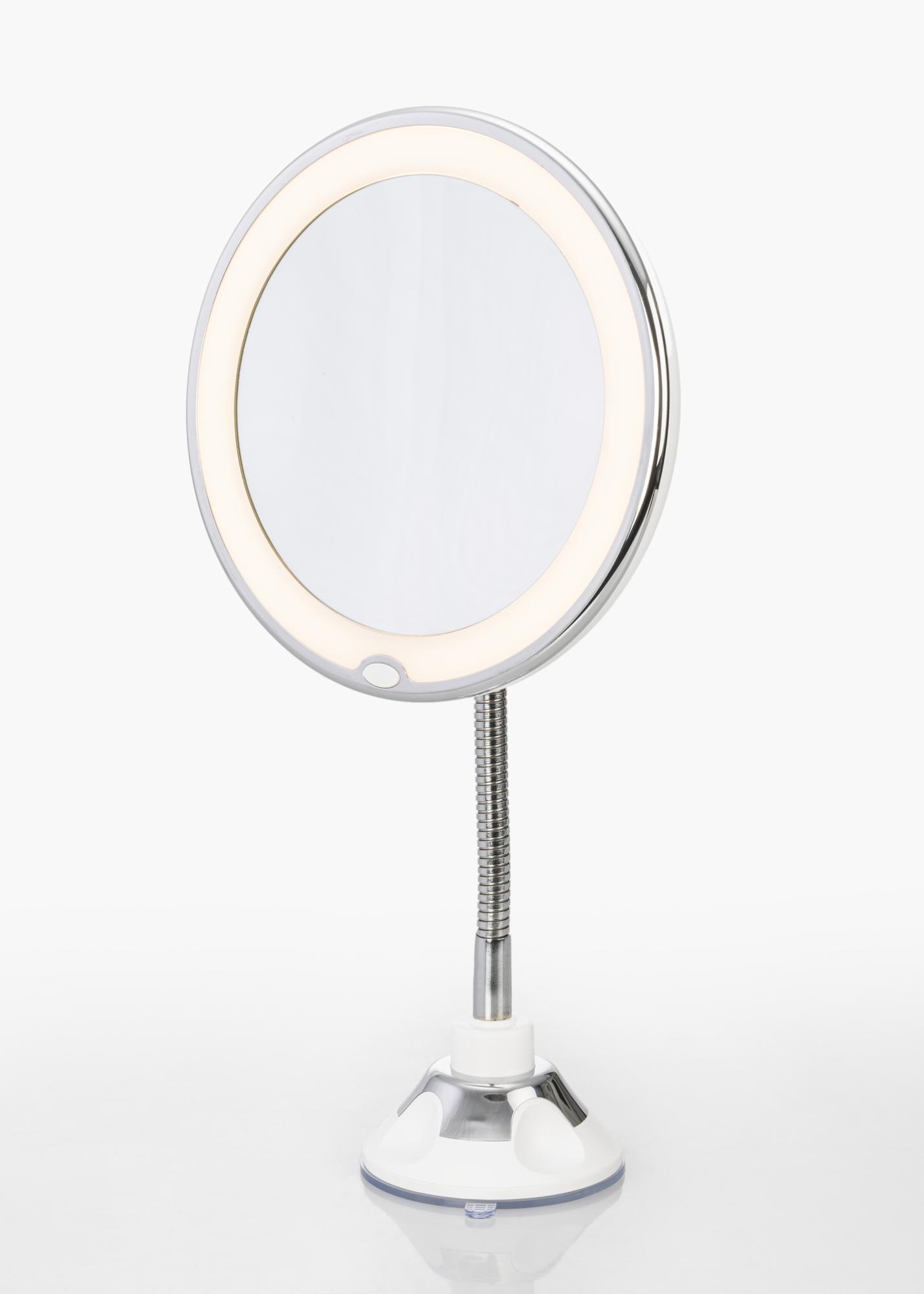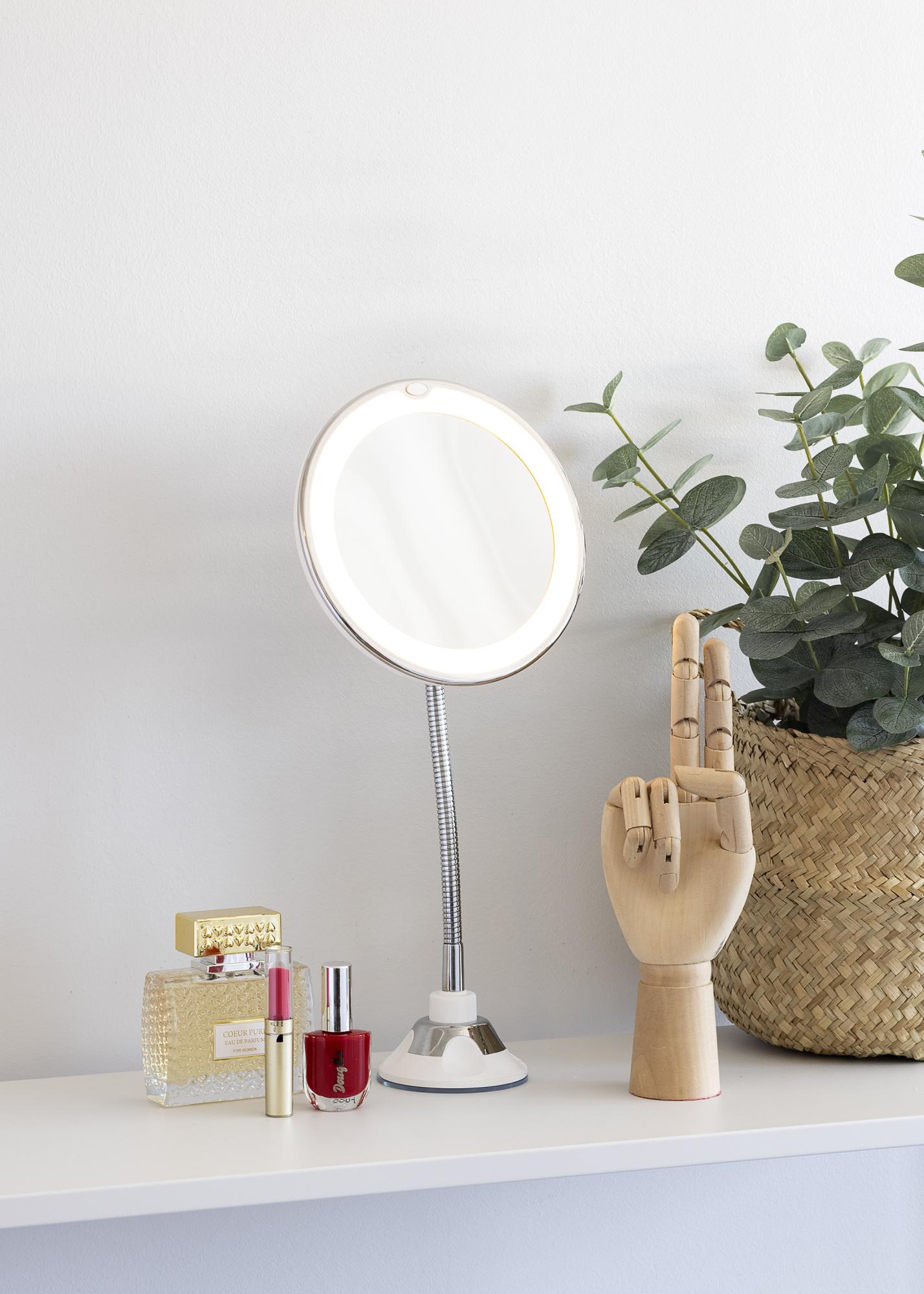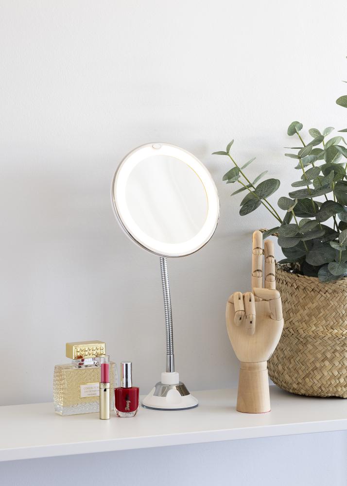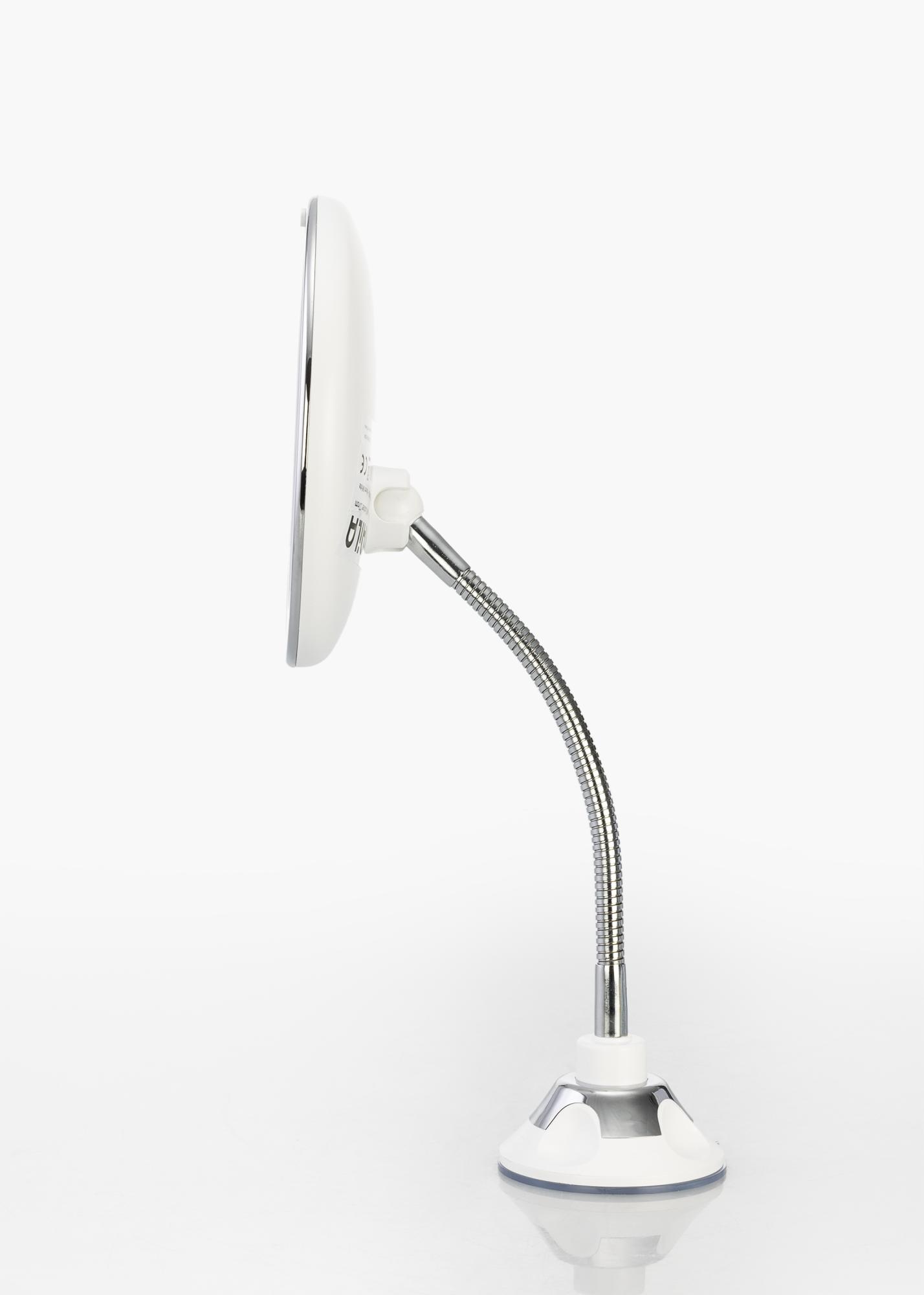 The mirror can be rotated on its stand, meaning that you can adjust the mirror to your desired angle. The mirror is approved for bathroom use. It can be attached to the wall, tiles or table using the accompanying suction plug. The suction plug can be locked in place, ensuring that the mirror sits firmly on the chosen surface. Comes ready-mounted.