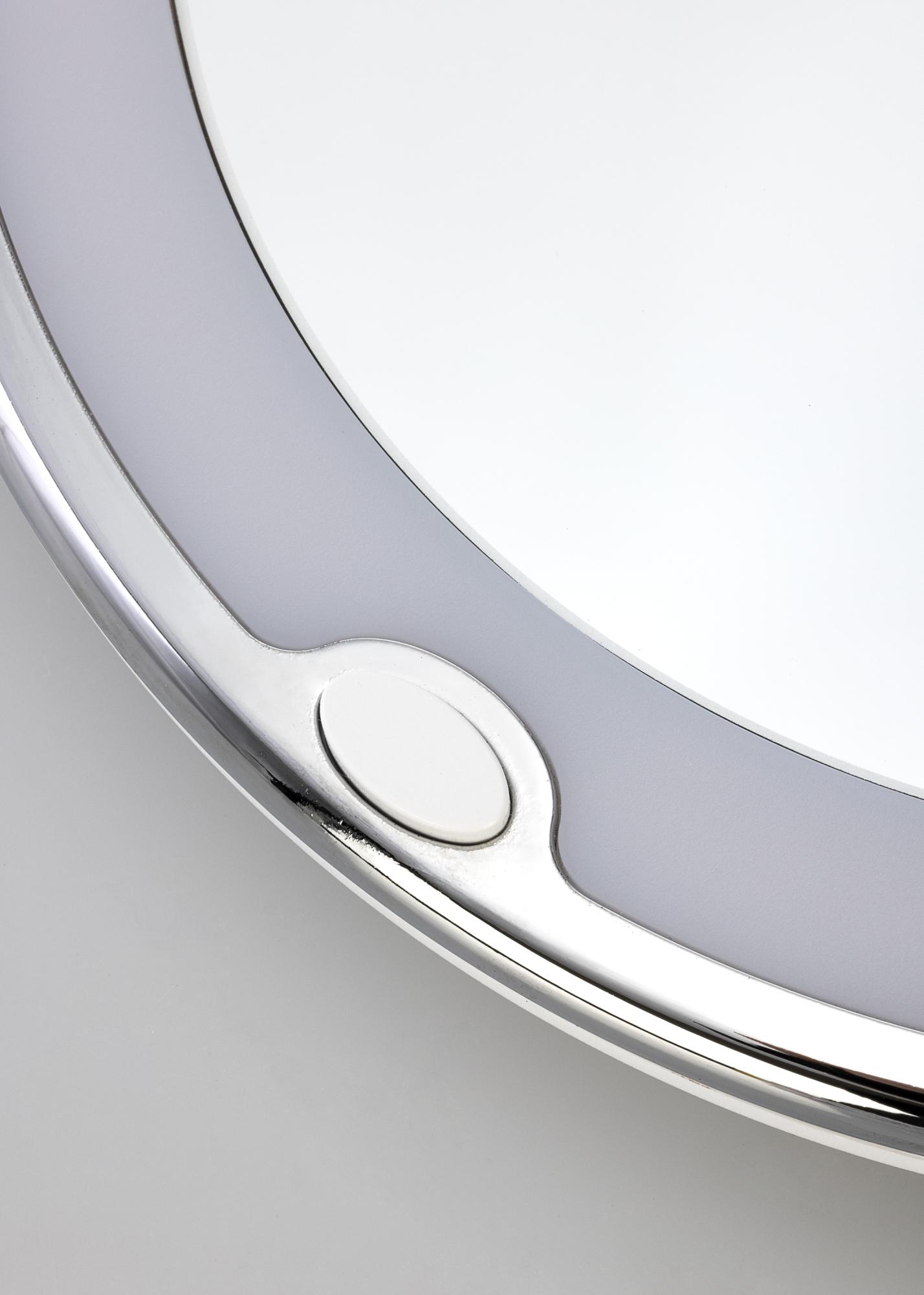 This is a classic and elegant bathroom mirror with integrated LED lighting from the Swedish brand KAILA. This mirror is truly the perfect tool that allows you to see all the small details, since it has magnifying mirror glass with x5 zoom, giving you a sharp, close-up reflection. The LED lighting gives off a warm, white 3000K light around the surface of the mirror, the diameter of which is 17 cm.