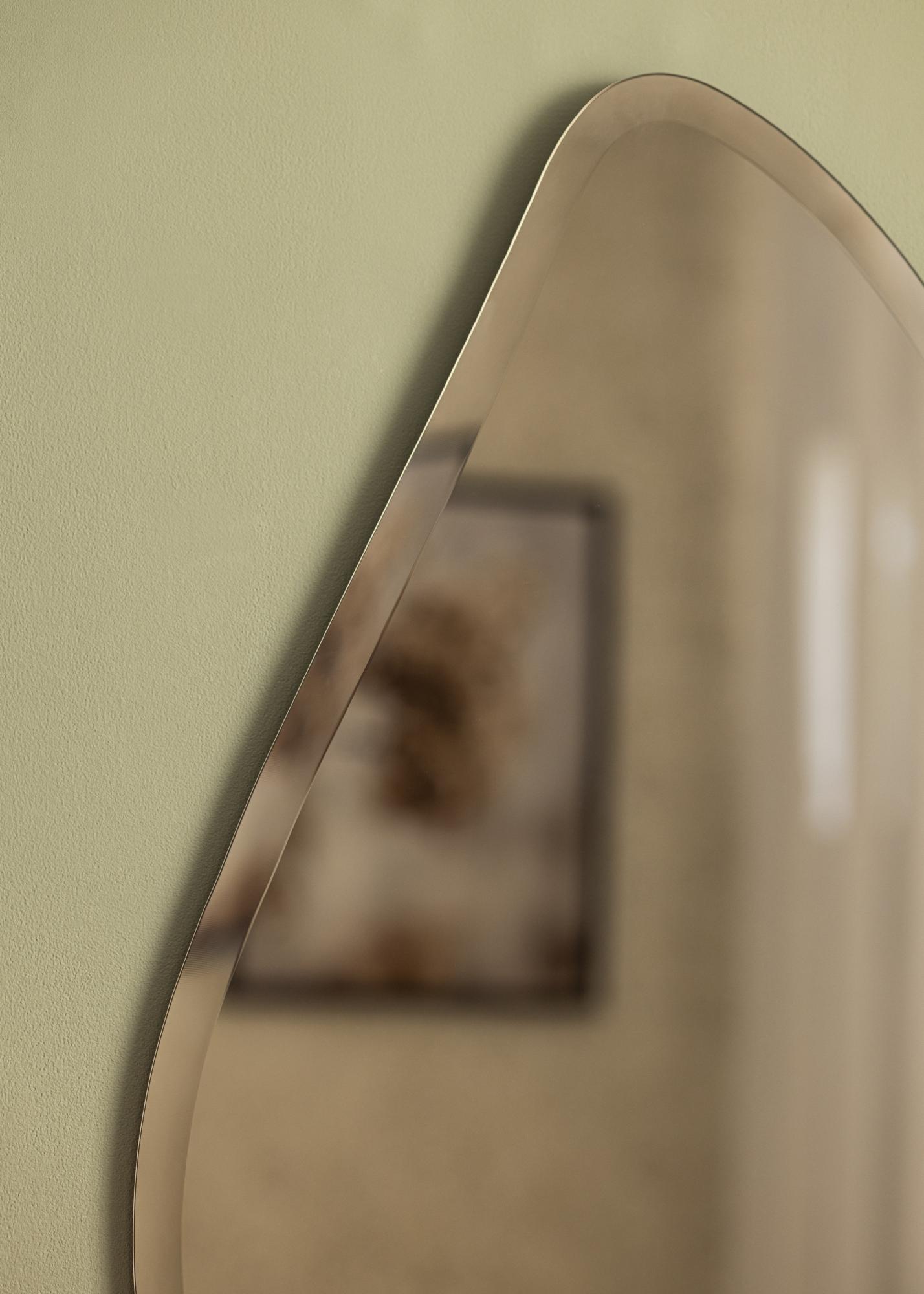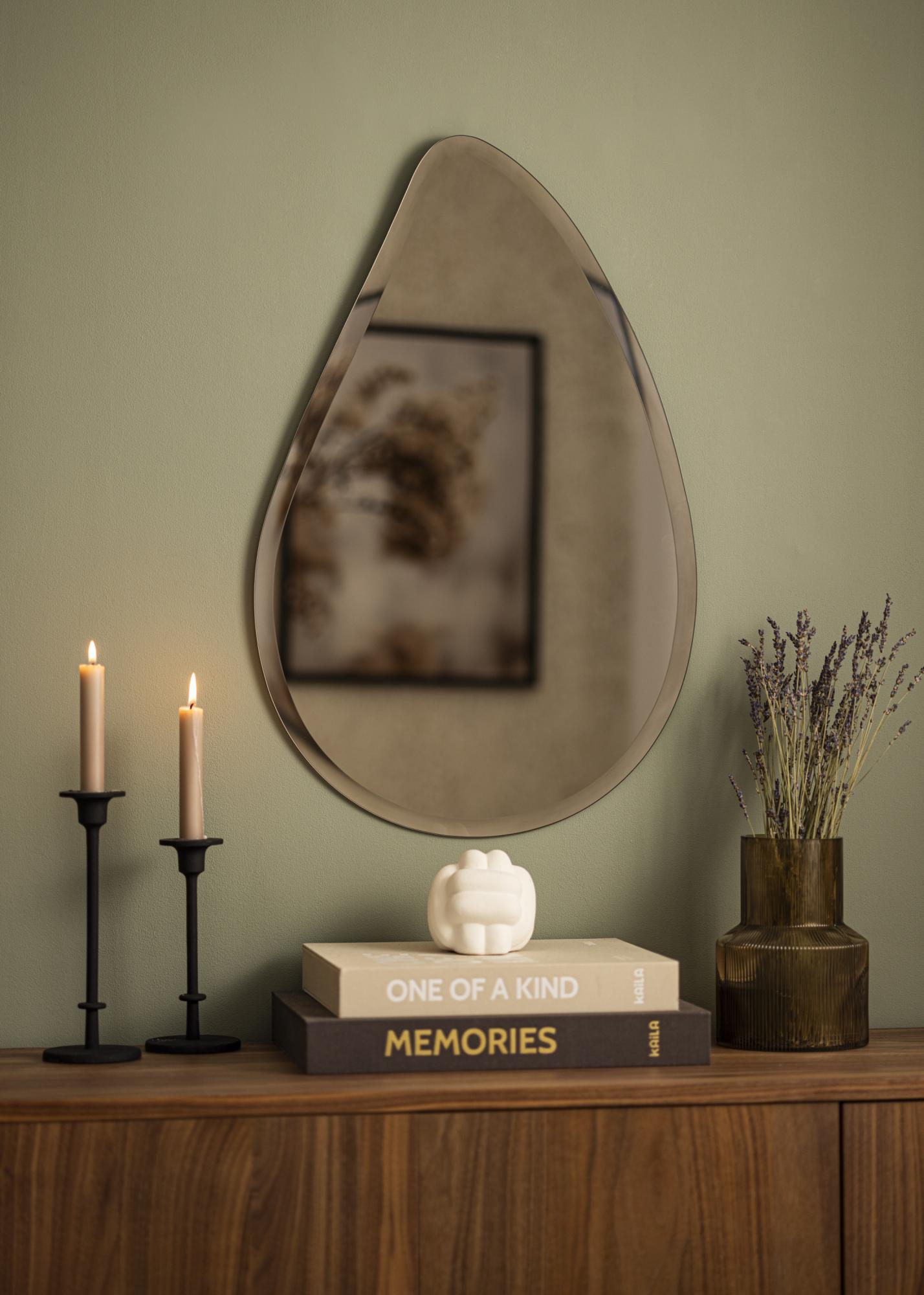 This is a fashionable, drop-shaped mirror with an even more fashionable, elegant bronze toned mirror glass. The toned mirror glass makes a big impact, and the beautiful bronze colour is easy to match with lots of different decor colour schemes. The mirror is very thing and has no frame. In combination with the luxurious faceted edge, this makes the mirror appear even more elegant and modern. This is a very decorative mirror, and is guaranteed to attract attention wherever it's put - whether in the living room, hall or bedroom.