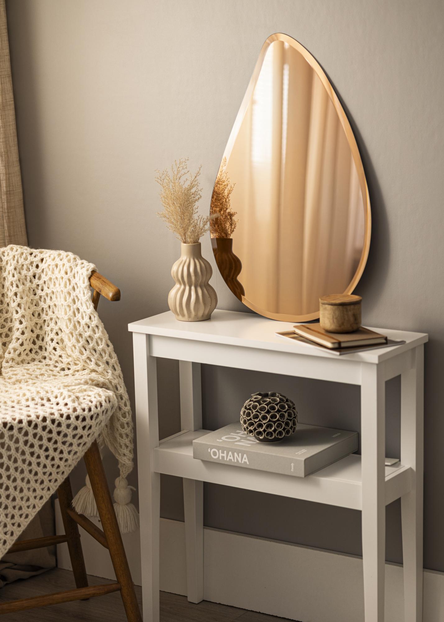This lovely mirror is designed in a teardrop shape to create a soft and elegant appearance. The mirror features a faceted edge, which adds to the exclusive feeling. The modern rose gold-tinted mirror glass adds a super trendy interior detail.