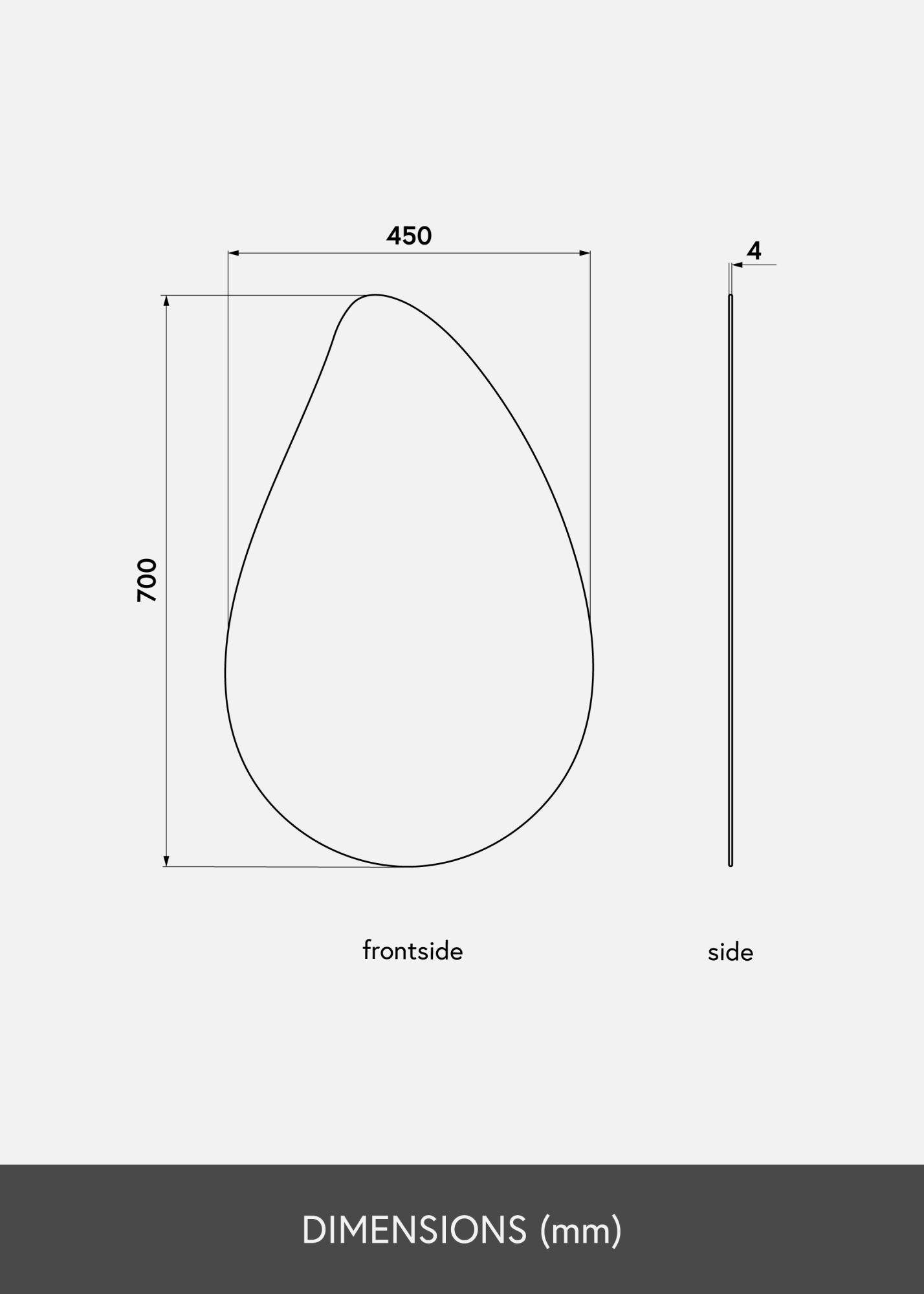 A teardrop-shaped mirror like this looks great on the wall in any room where you want to add a touch of elegance and practical function and create an inviting and light-hearted mood. The mirror is available in several sizes. This example measures 45x70 cm.