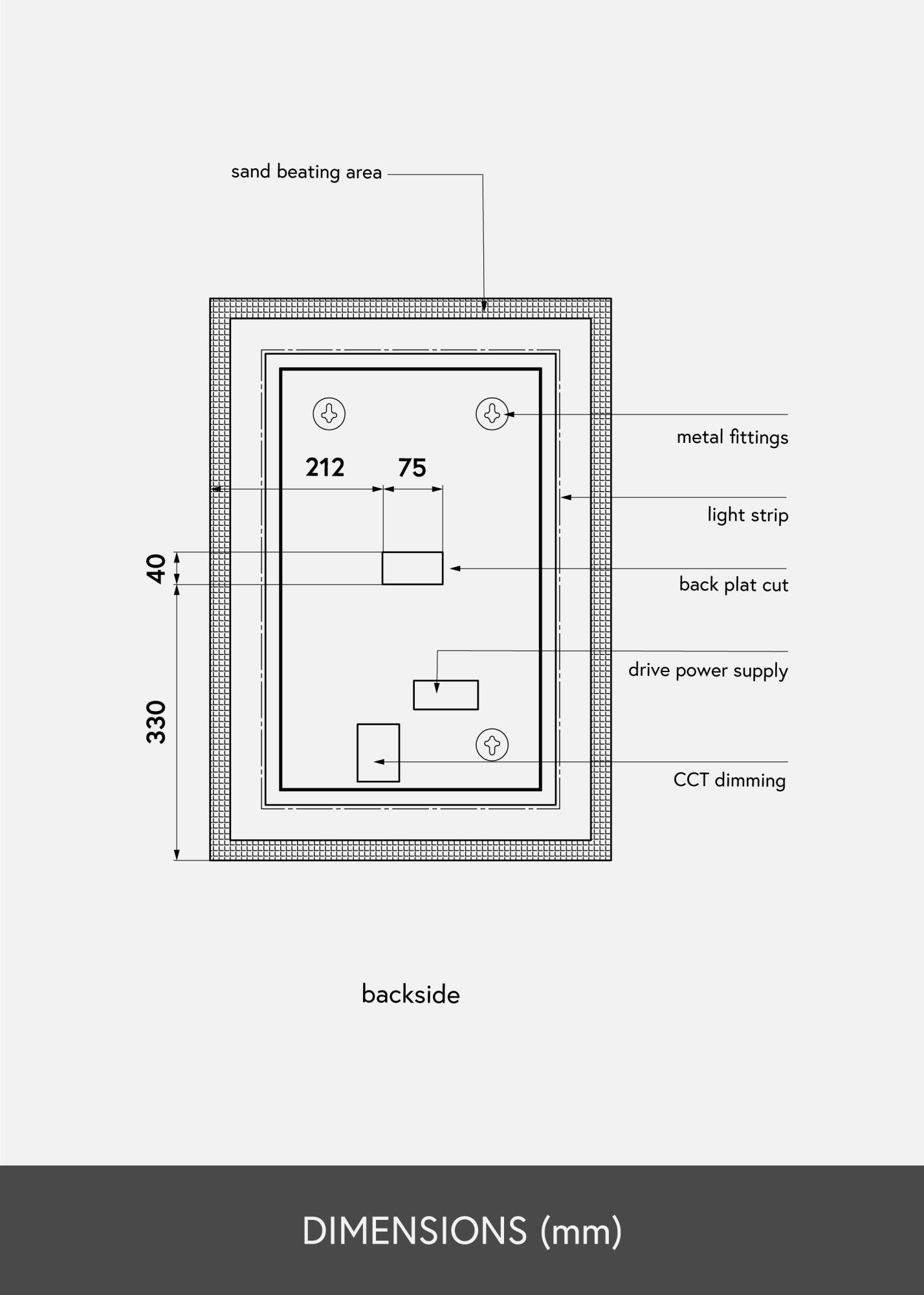 This elegant bathroom mirror has a depth of just 3 cm, and measures 50x70 cm. It is approved for bathroom use, and the stylish design really contributes to a feeling of luxury in your home! This mirror is intended for fixed installation and for connecting to a light switch.