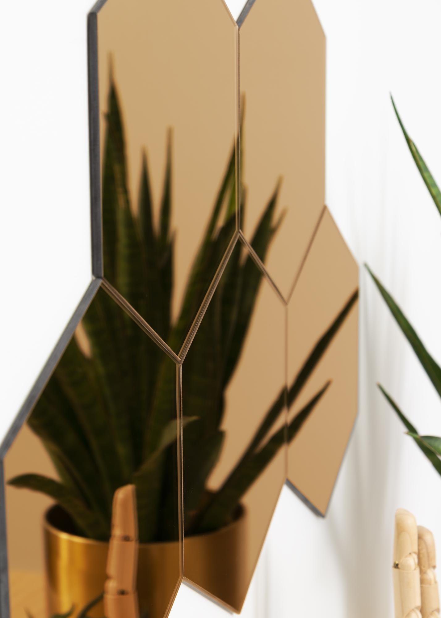 Display the mirrors in a group, next to each other in a row – or however you want! Bring out your creativity and create something unique. Why not buy several packages and expand your trendy mirror wall decoration? These hexagon-shaped mirrors are also available in bronze and clear glass varieties, which you can mix and match to your taste to create an even livelier mirror decoration.